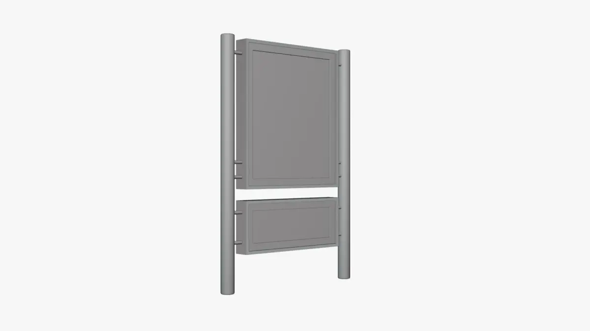 This is a 3D model of an Advertising Stand, featuring detailed components such as the pole, outer frame, inner frame, and panel. Ideal for marketing displays, event signage, or product promotion mockups, this model is built with clean geometry for easy customization.