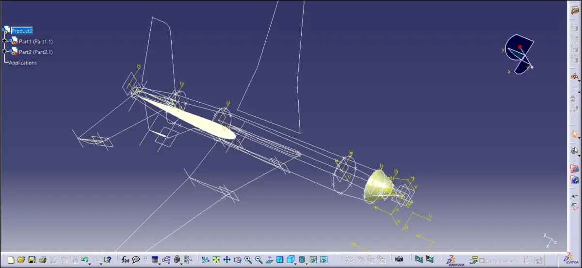 3D design model of a passenger Aircraft. All commands were stored in the file. So the user can learn all the basics from following the tools from History. This model gives advance knowledge of Tools in CATIA v5, also enables the user to further development into 3D printed model and helps the basic user to get advanced in CATIA v5. This was perfectly designed for begineer so that they can follow up without any doubts. As you can able to see all the tool activity under Parts Tab.