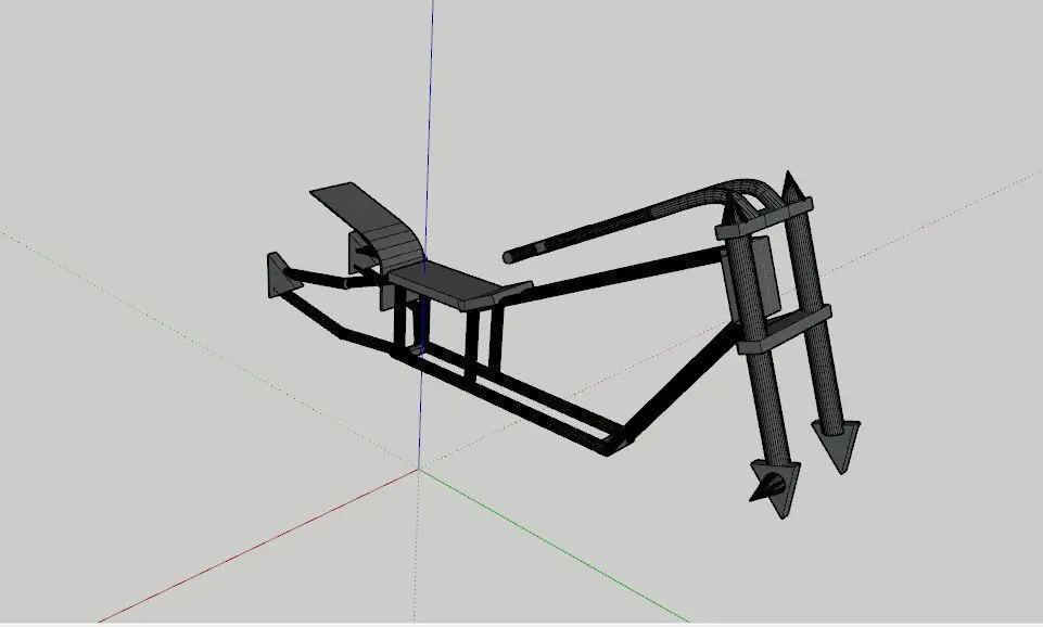 This is a basic Chopper frame made in Sketchup it can be good for a bike project it has a mean look with the spikes there is no texture so feel free to add your own. This frame can be modified fairly easily.