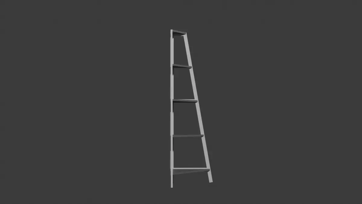 A simple wooden corner plant stand designed with three sturdy legs and five graduated shelves for displaying plants or decorative items. The model features a compact triangular footprint that fits neatly into any corner, maximizing vertical space. Finished in a light gray tone with darker gray accents, it combines subtle contrast with a clean, modern aesthetic. The structure is both functional and visually balanced, suitable for living rooms, patios, or sunrooms. Geometry is clean and lightweight, ideal for interior visualization or home décor scenes.