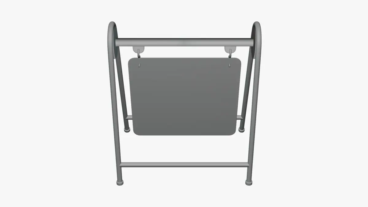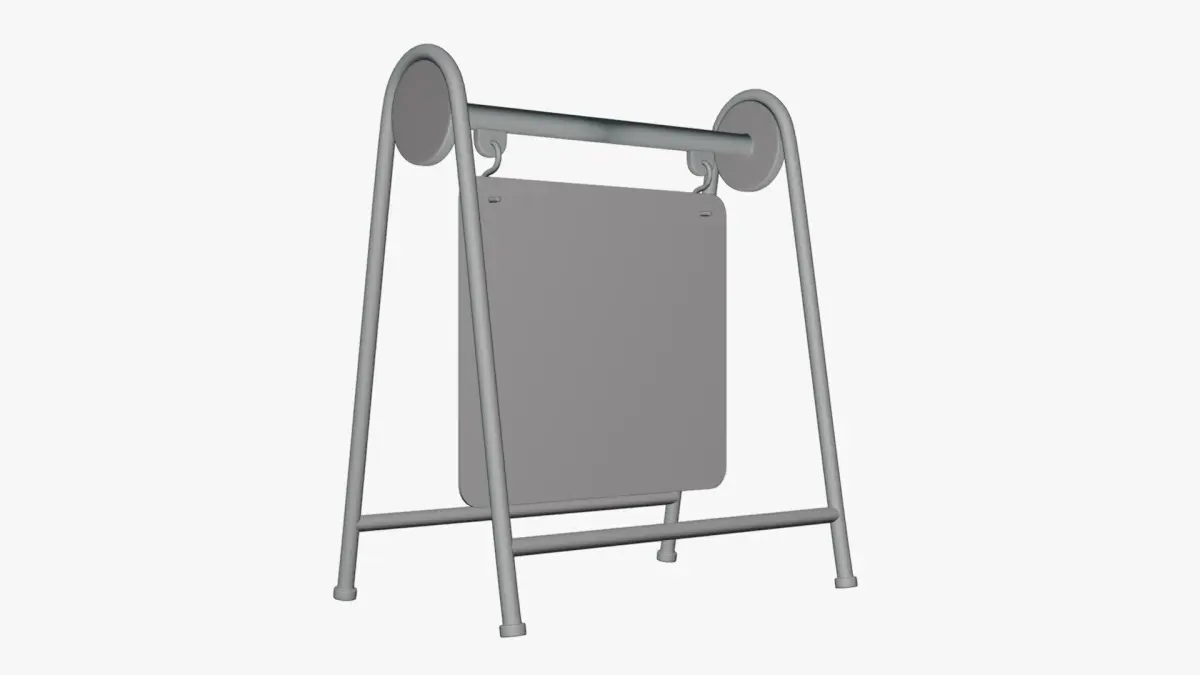 This basic display stand is designed for retail product displays, exhibitions, and marketing events. The model includes a frame stand, display board, metal hooks, and support bars for a realistic presentation.