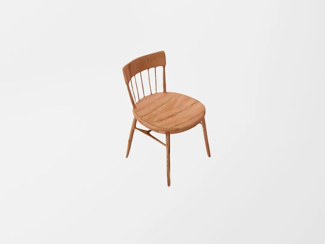 A timeless wooden spindle chair with a gently curved backrest and a round, contoured seat for comfort. Crafted from warm-toned wood with a smooth, natural finish, this chair blends traditional charm with modern simplicity. Sturdy, tapered legs and subtle cross-bracing provide durability while maintaining a lightweight aesthetic.