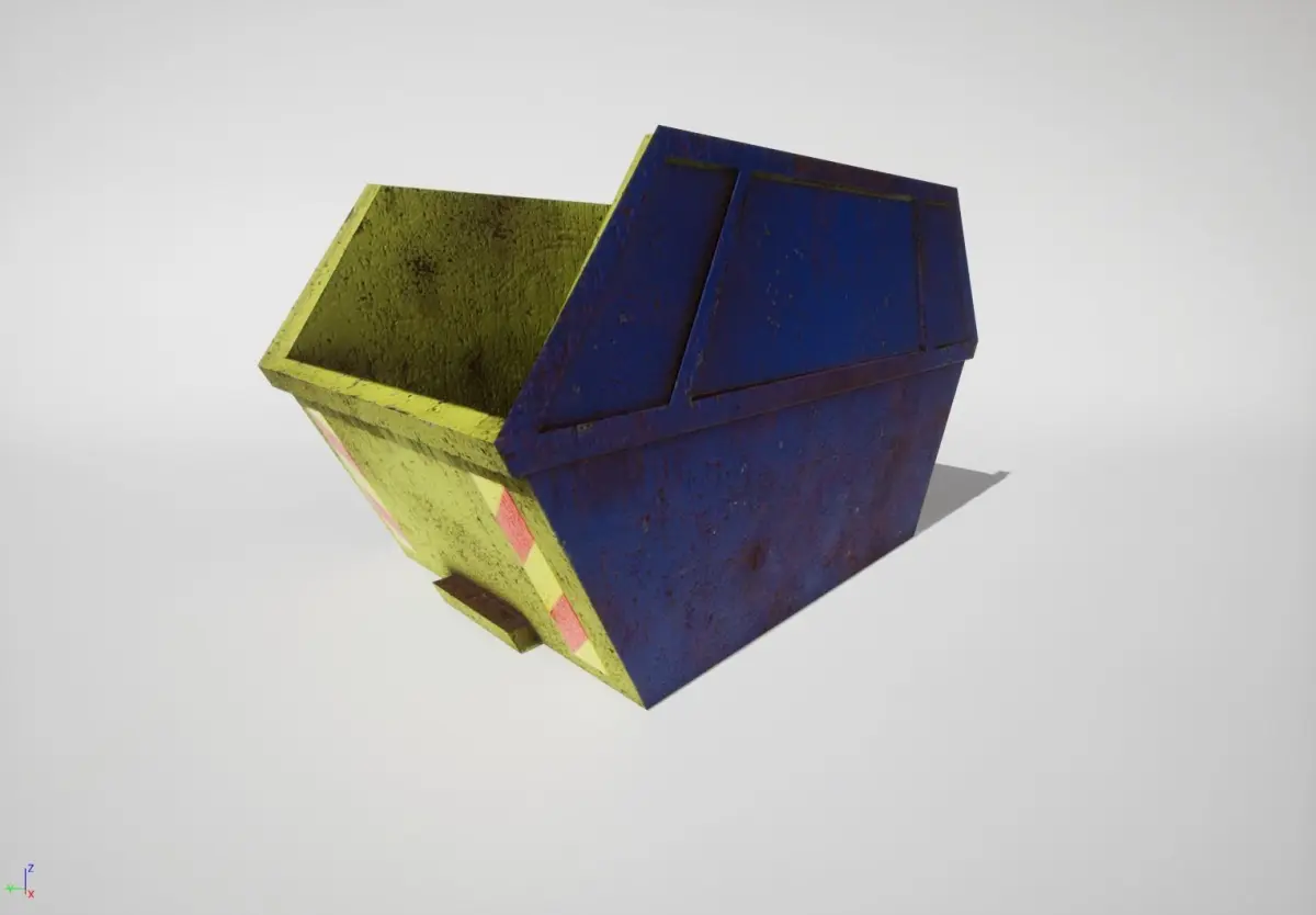 302 poly rubbish / Rubble skip with 1024 textures. No animation or different states. Purely for decoration. Created in Blender and textured in Substance. Screenshots taken in UE5 and wireframe in blender. Ideal for a mobile or projects where resources are limited. Textures are packed for use in Unreal.