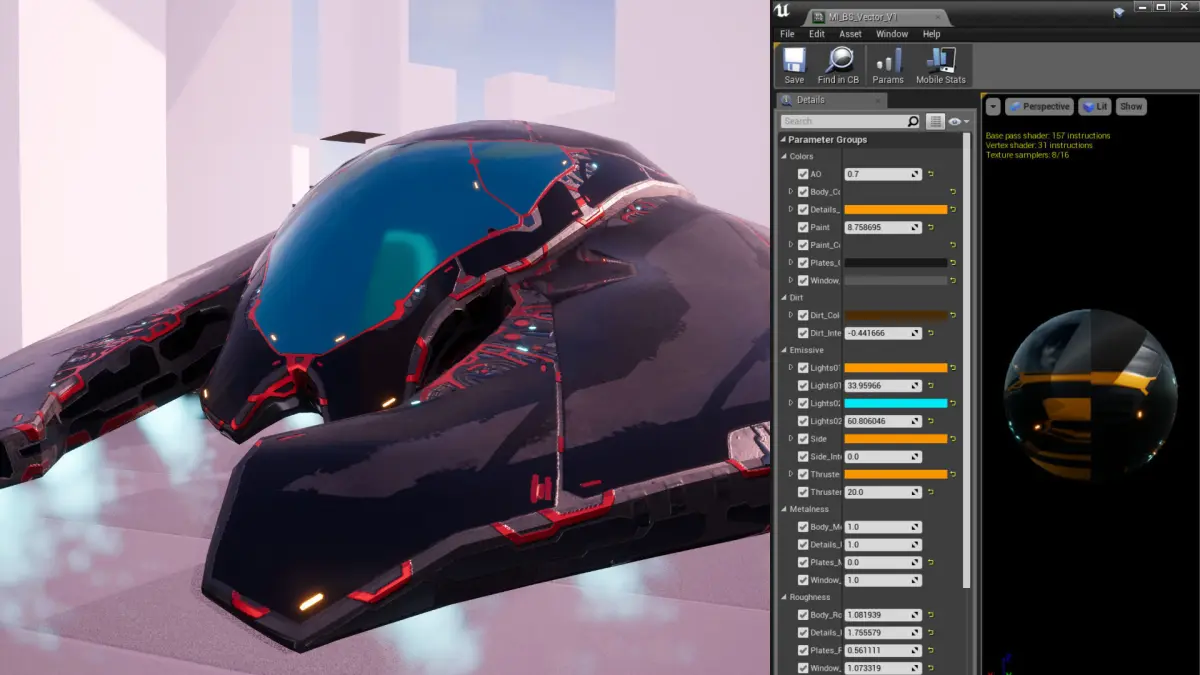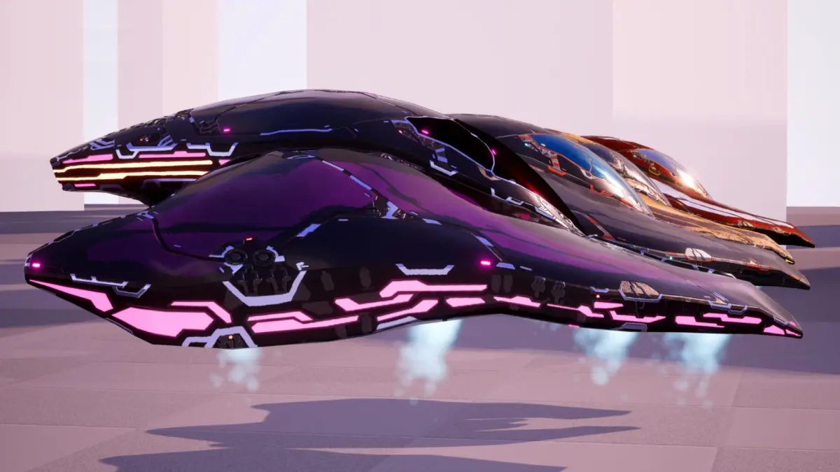 You can customize every aspect of this ship, it has texture masks so you can make unlimited variations playing with the color, dirt amount, roughness, metallic, emissive aspects of all the different parts of it's skin.