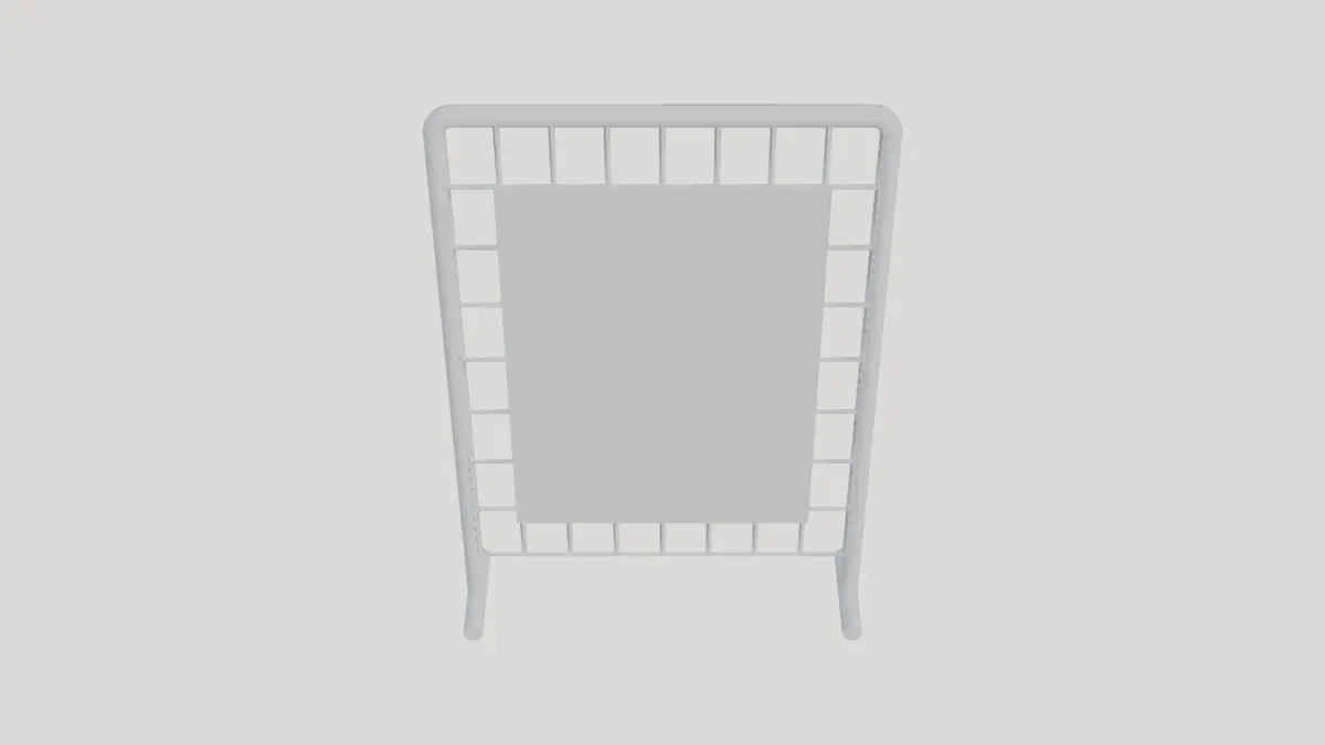 Modern wire display stand with frame and board panel. Perfect for retail environments, trade shows, or product exhibitions. Clean industrial design with realistic wire thickness and proportions. The display board surface is perfectly flat for easy application of graphics or product placement. This model excels in retail environments, trade show exhibitions, or as functional decor in contemporary office spaces. The geometry is optimized to balance visual fidelity with performance efficiency.
