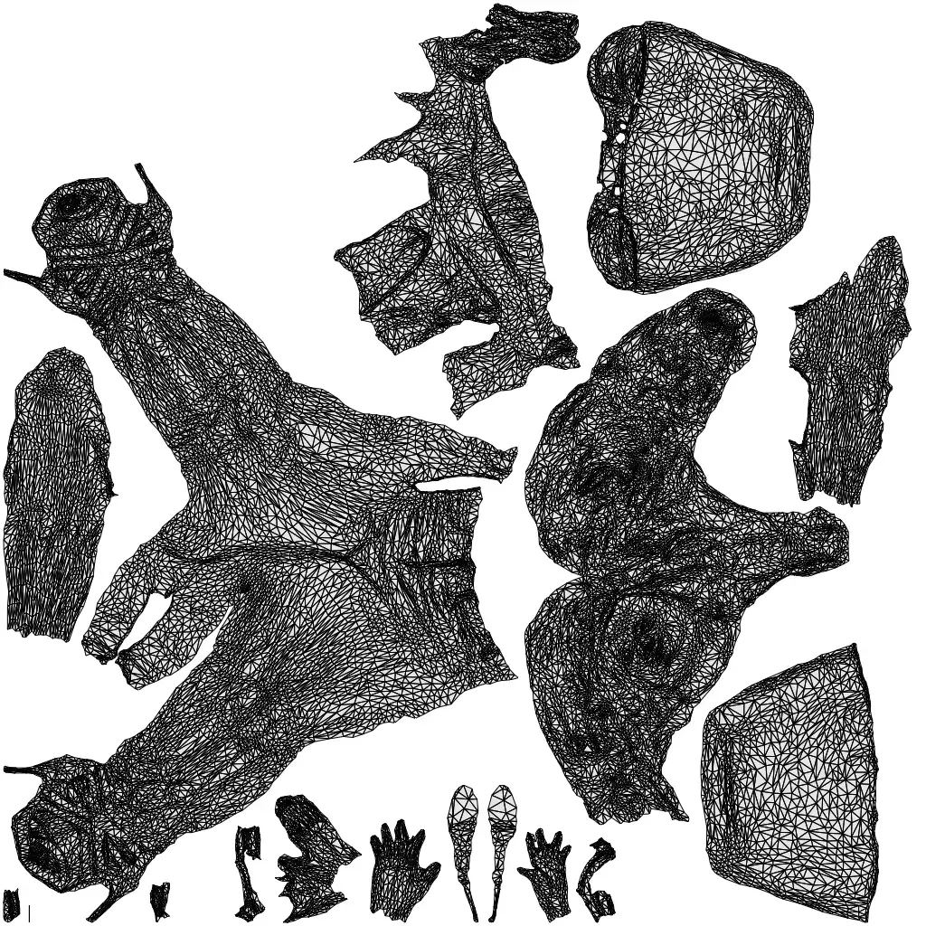 (~40k triangles, ~20k vertices per person) + 2k jpg color texture.