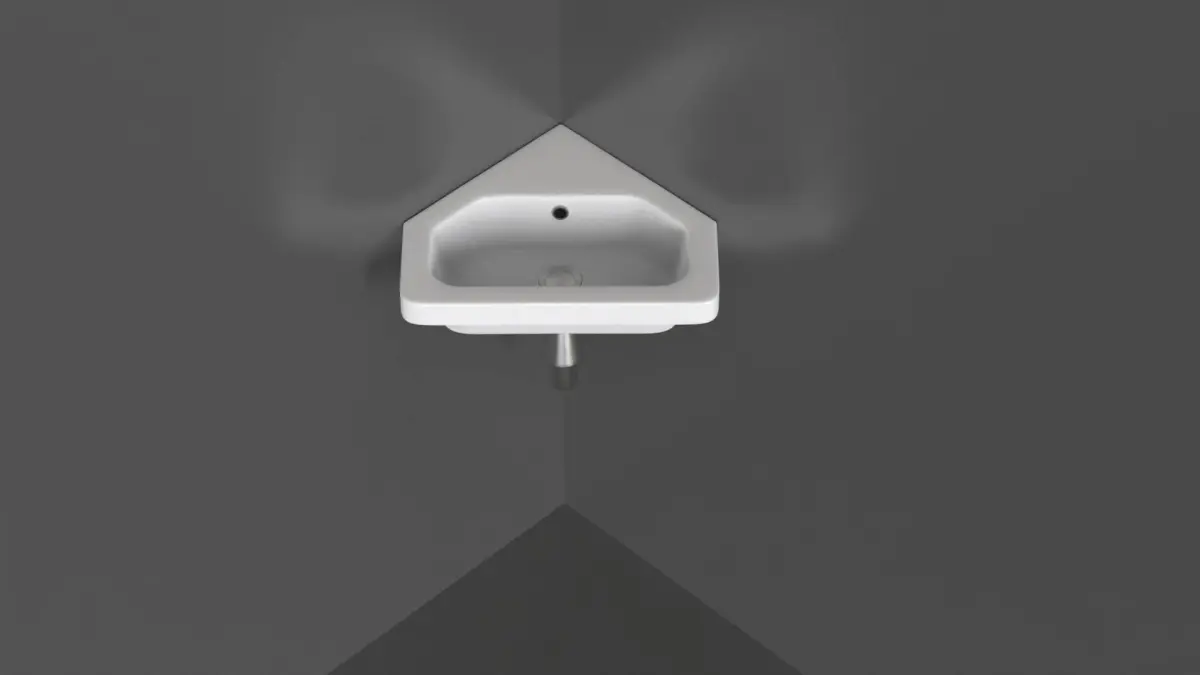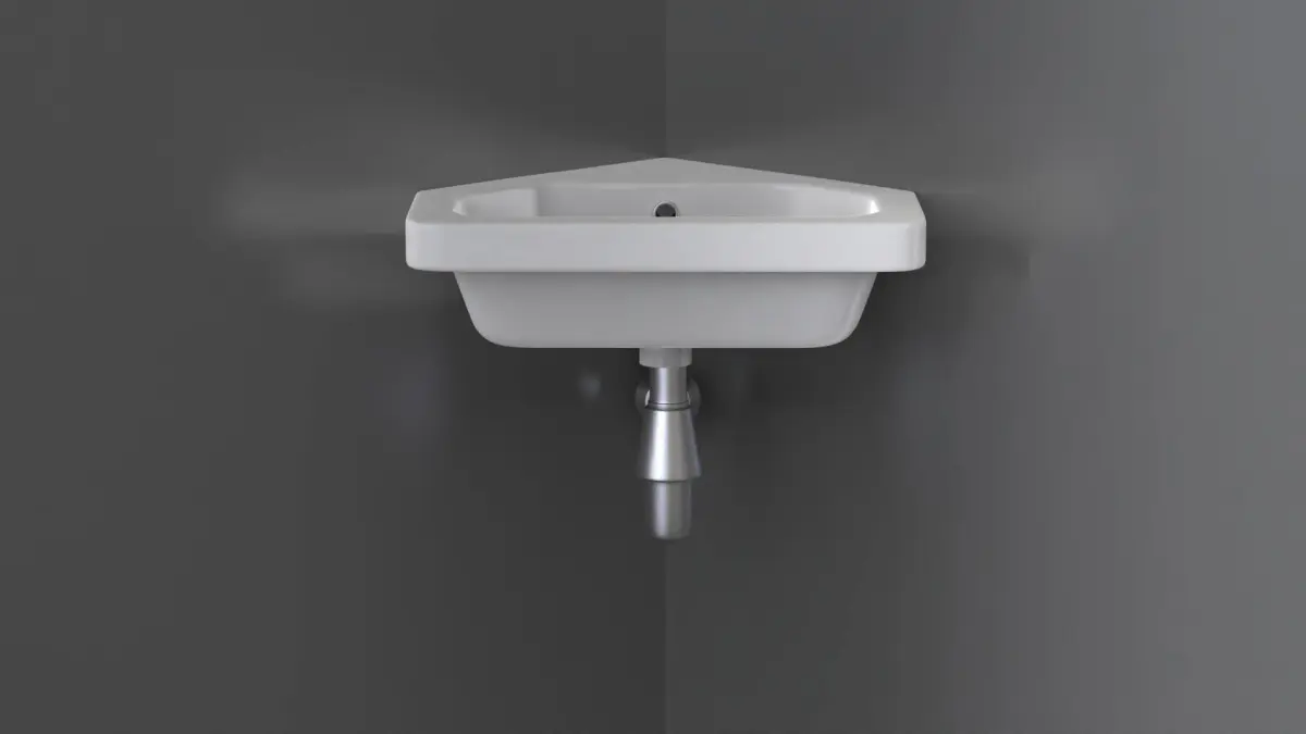 Highly detailed wall-mounted corner sink. Modeled in 3ds Max and rendered using KeyShot render engine (although the textures from any render engine can easily be applied).
