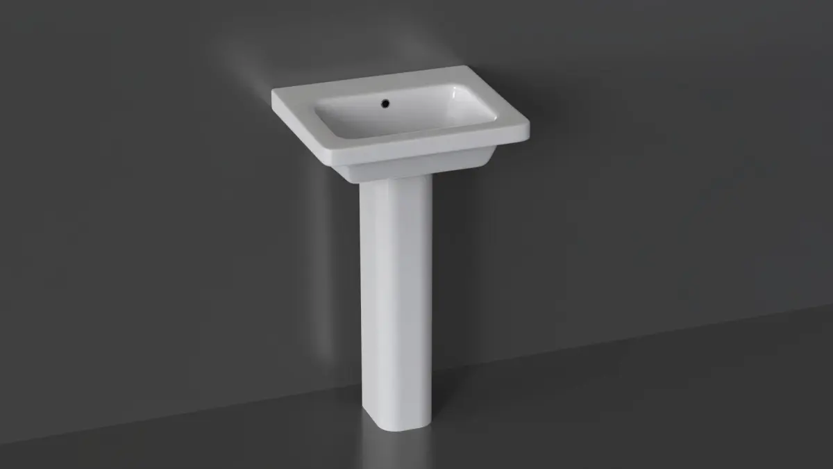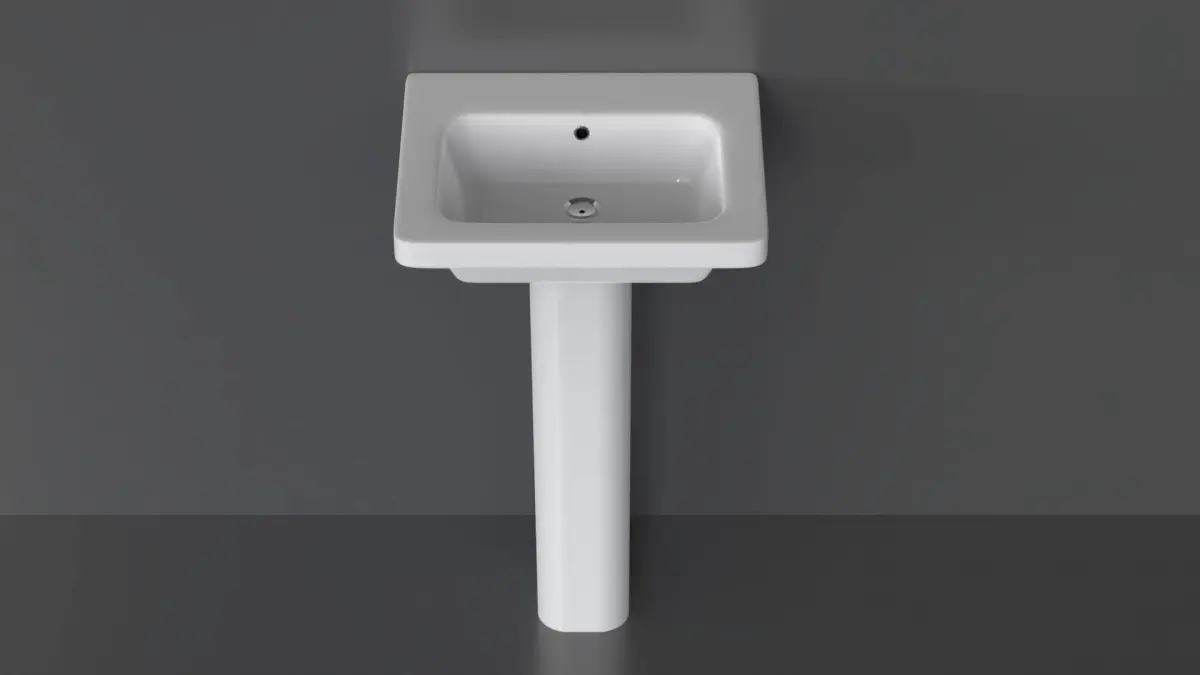 Highly detailed floor-mounted pedestal sink. Modeled in 3ds Max and rendered using KeyShot render engine (although the textures from any render engine can easily be applied).