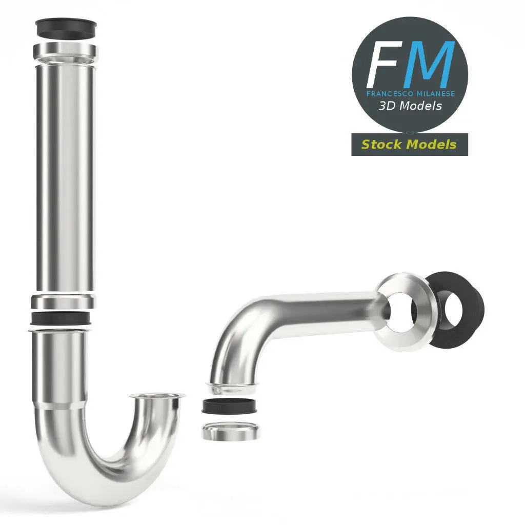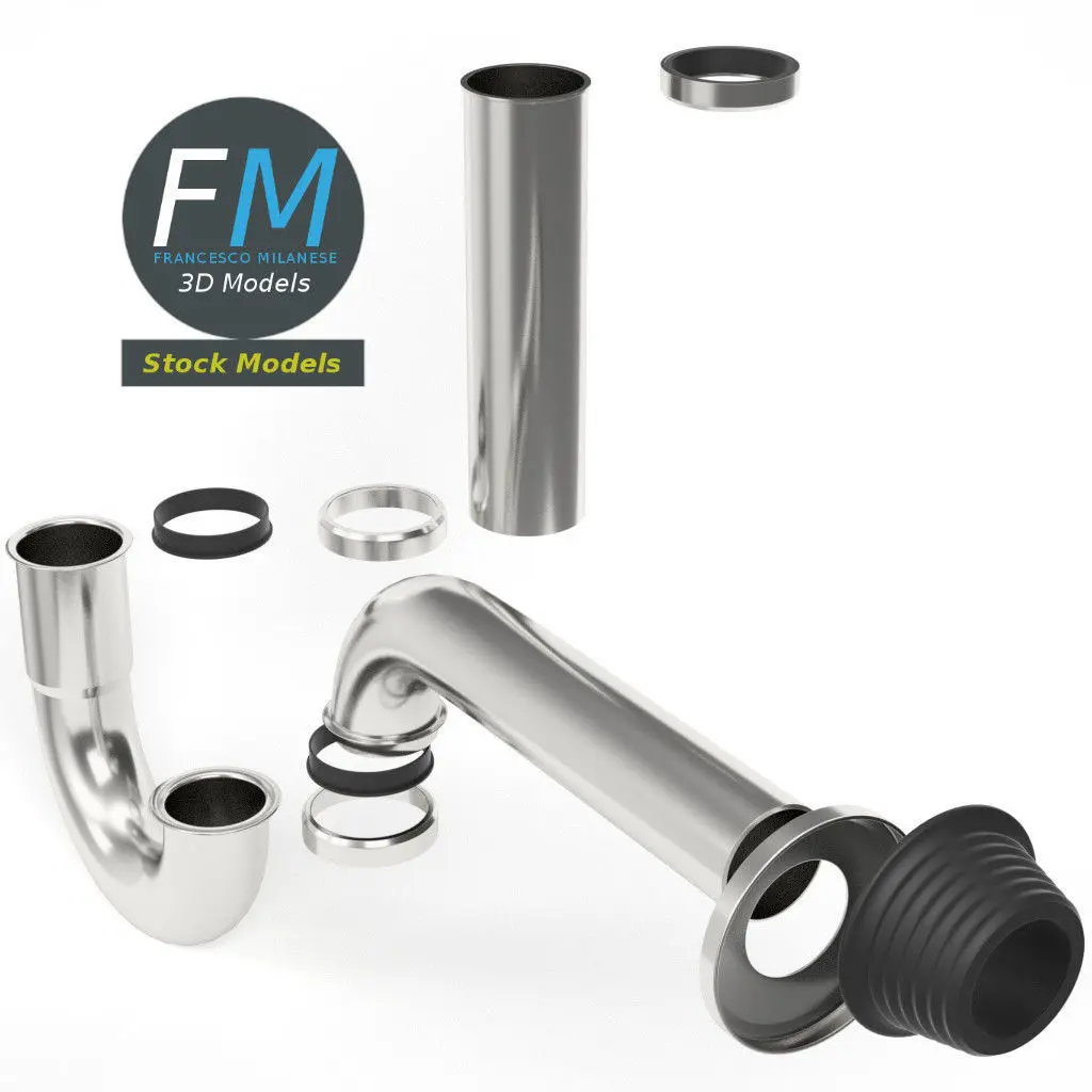 Basin sink siphon 3D Model. 11 individual objects (wall pipe, drain elbow, dip tube, seals, cap nuts, ...), parented (so, you can easily move, rotate or even animate them), sharing the same non overlapping UV Layout map, Material and PBR Textures set. Production-ready 3D Model, with PBR materials, textures, non overlapping UV Layout map provided in the package.
