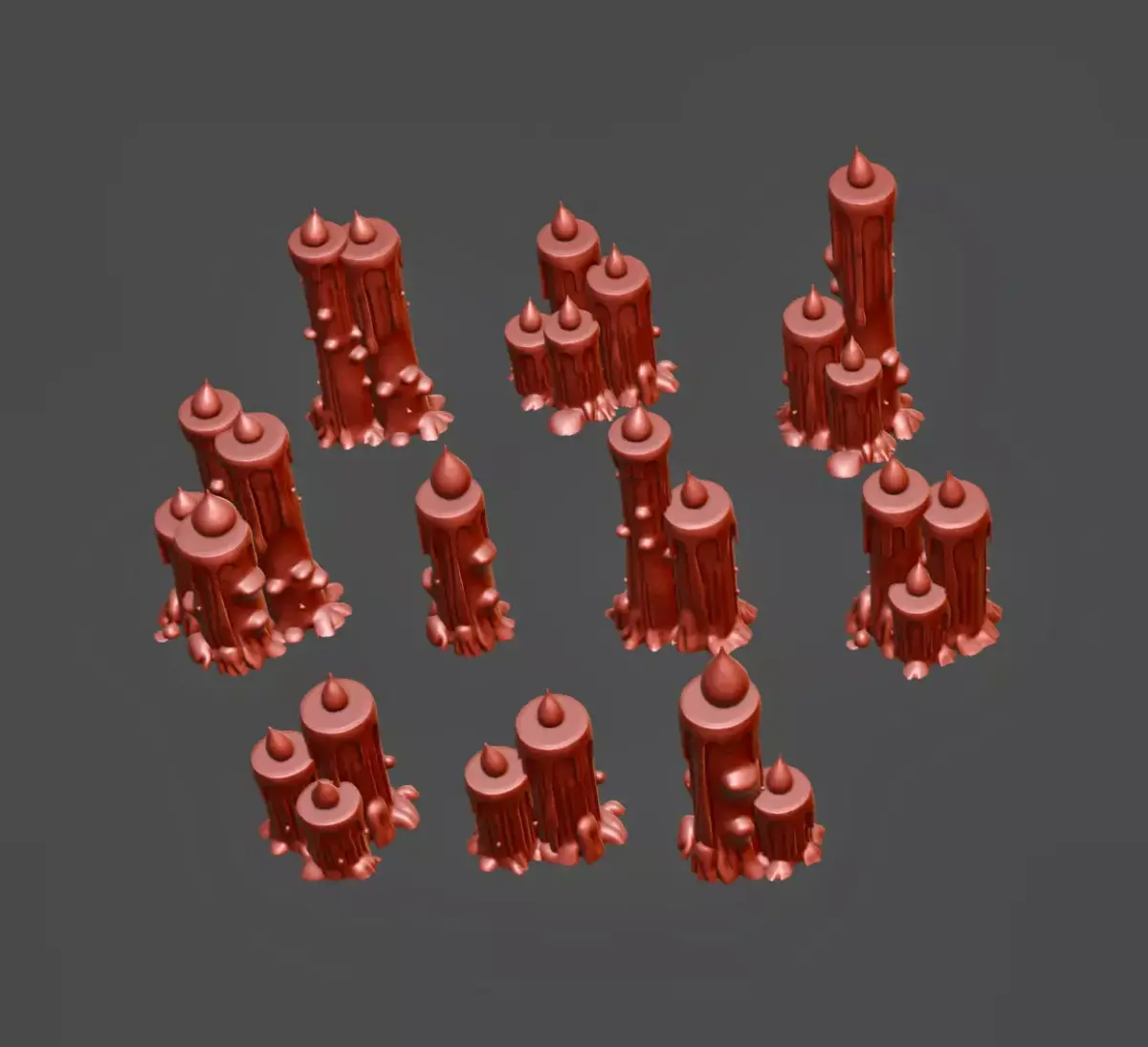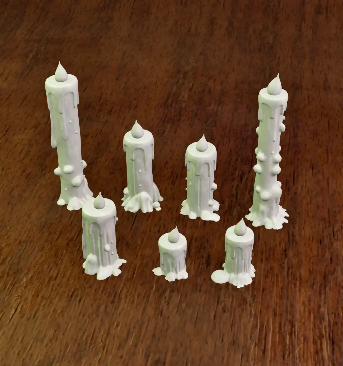 Each candle is designed flat-bottomed for easy placement on bases or scenery. Whether you’re decorating a dungeon floor, a ritual altar, or just want your heroes standing amongst the flicker of arcane light, these pieces give your projects that extra character.