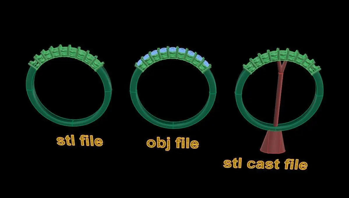 Detail design, Ready for print, Rounded corners for comfort, Properly setted stones ready for easy setting, Printed and tested, and Light in metal weight
