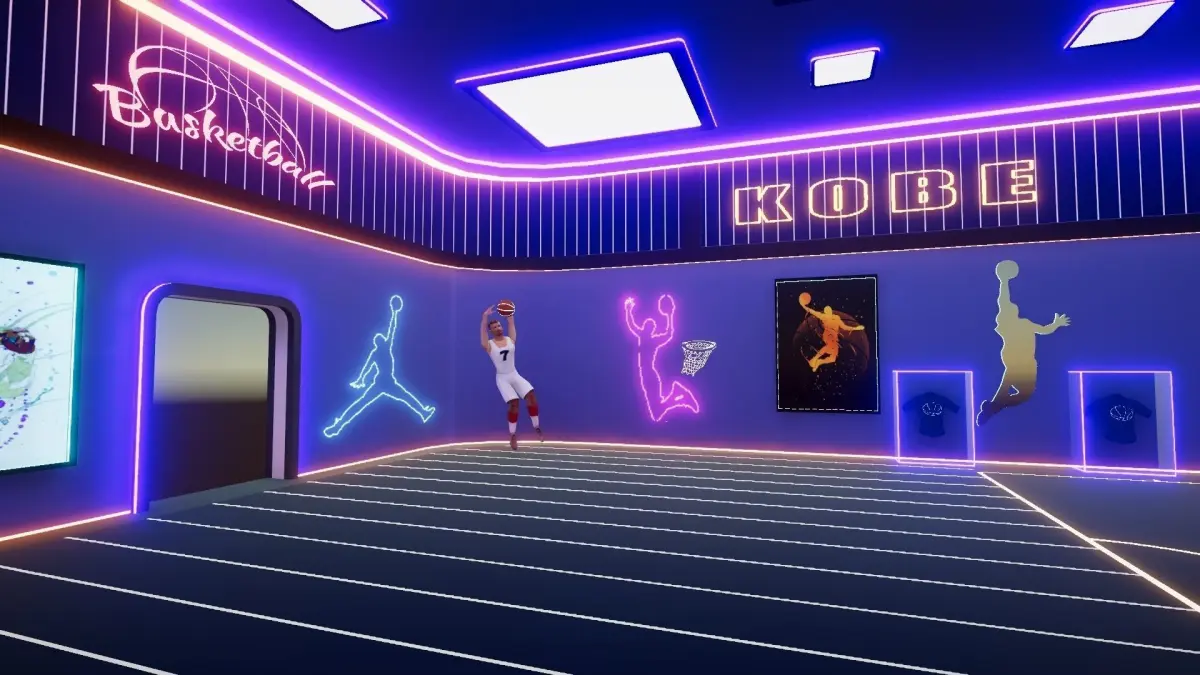 Basketball Court:Floor: Polished wooden floor with accurate markings for key areas and boundaries.Hoops: High-quality hoops with breakaway rims and glass backboards.Basketball:Design: Realistic textures with visible grooves and leather appearance.Position: Positioned on the court, ready for play.Features:
