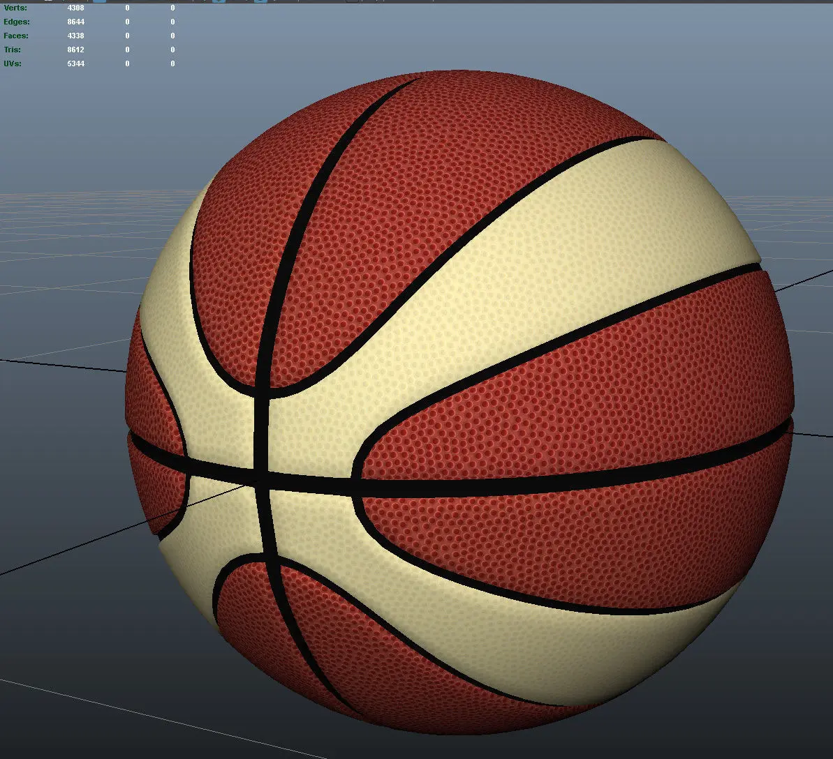 Lowpoly Basket Ball - Molten style.The UV Layout is for a texture 1:2.Polys: 4338Tris: 8612