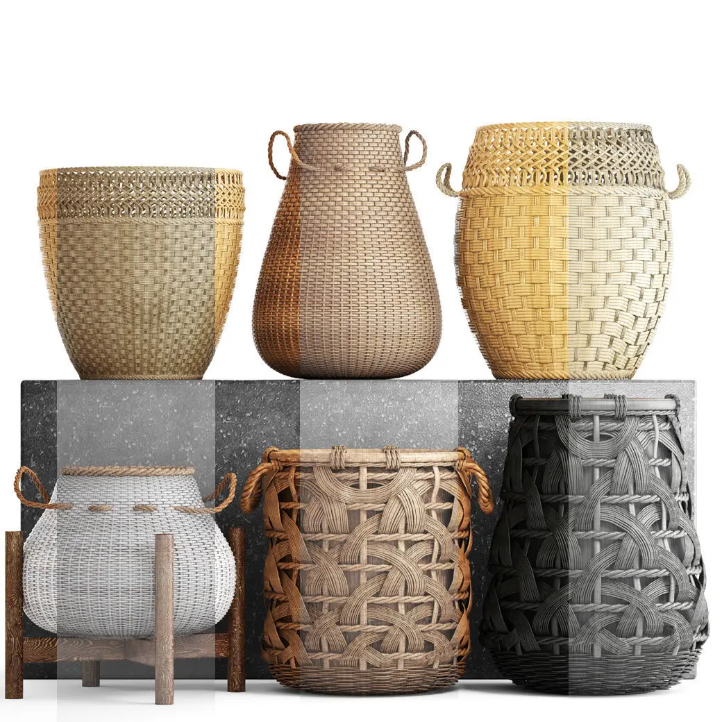 Basket Rattan set collection 3D model