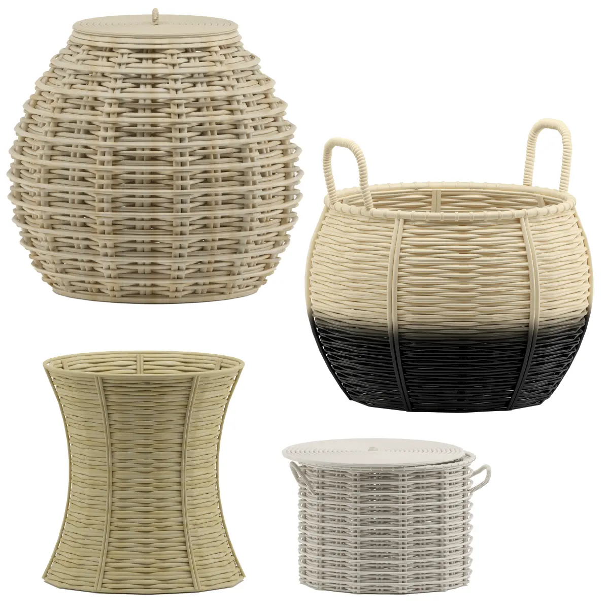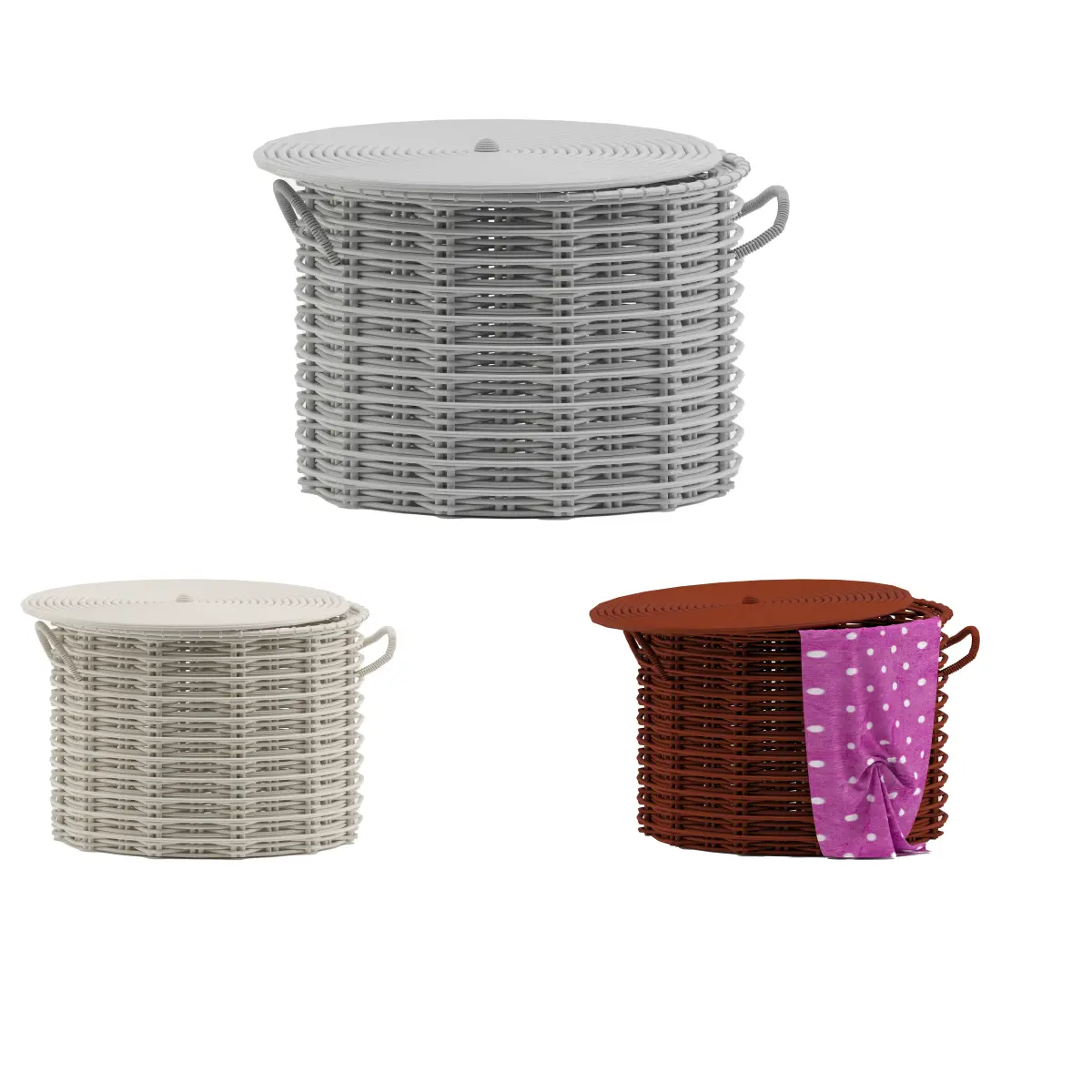 basket set 3d model rattan storage 3D model