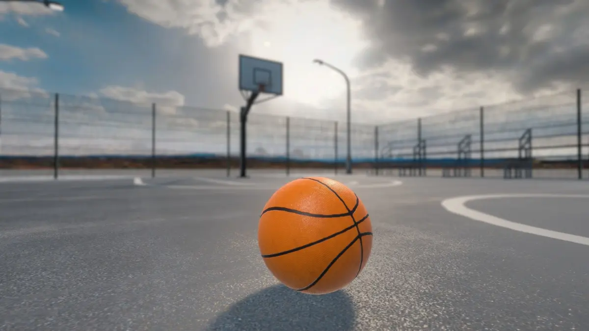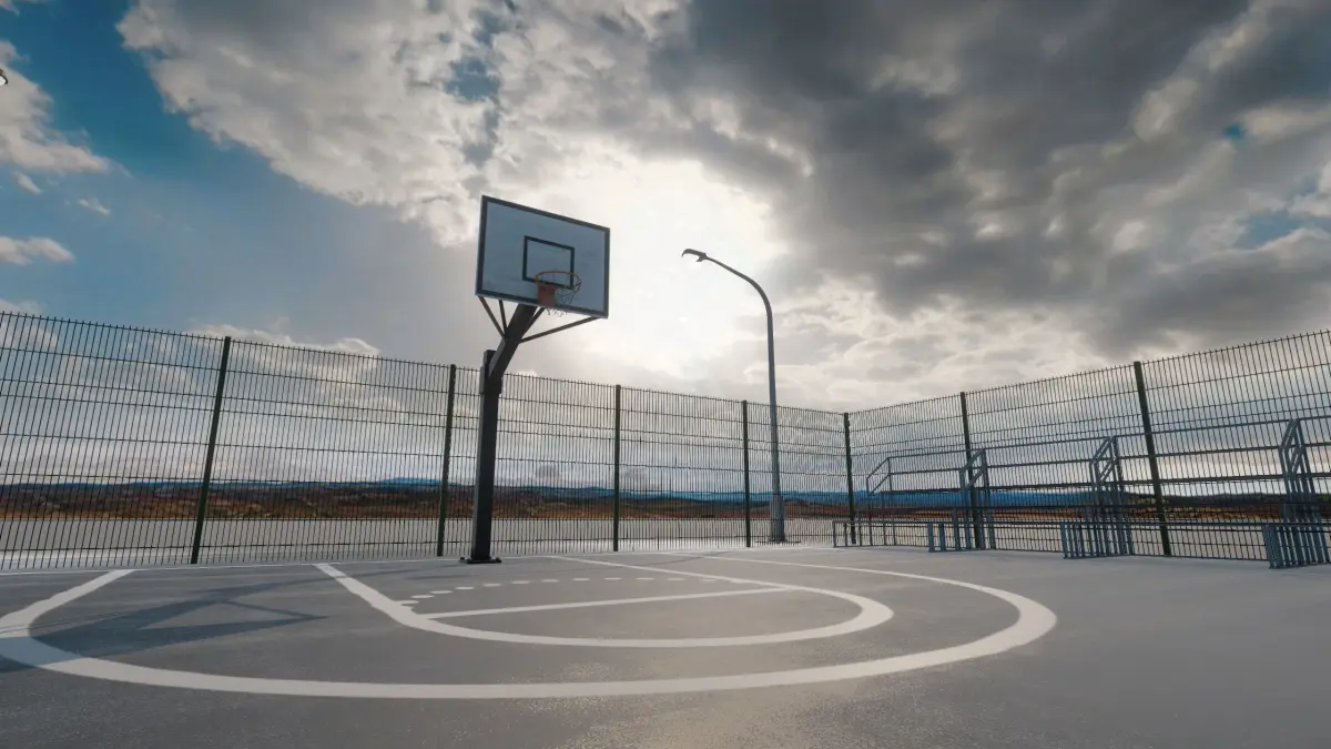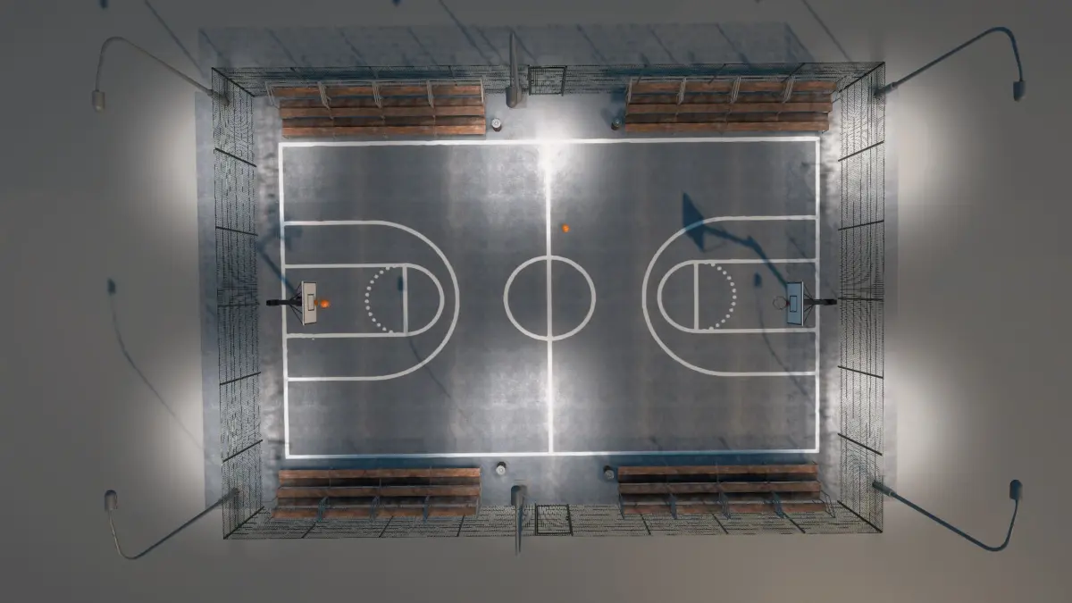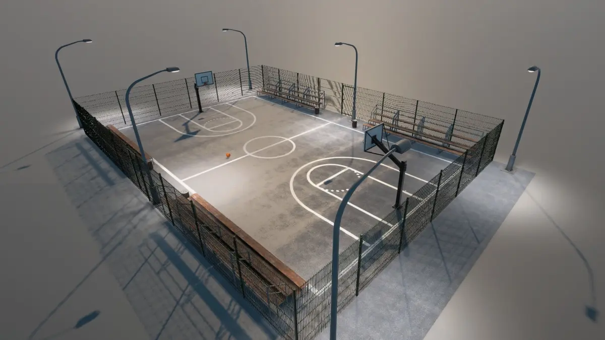 Models (10): Basketball ball, Basketball Hoop, Basketball court, Bench, Trashcan, 4 Fences, Street light.