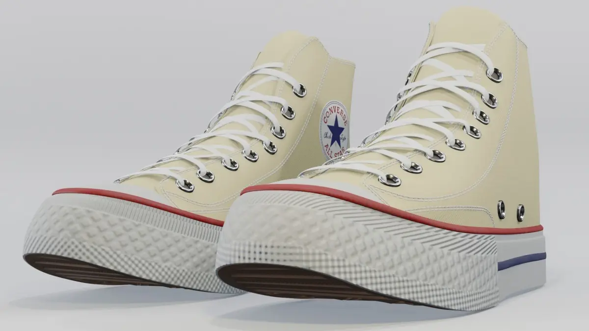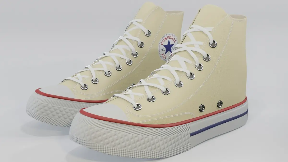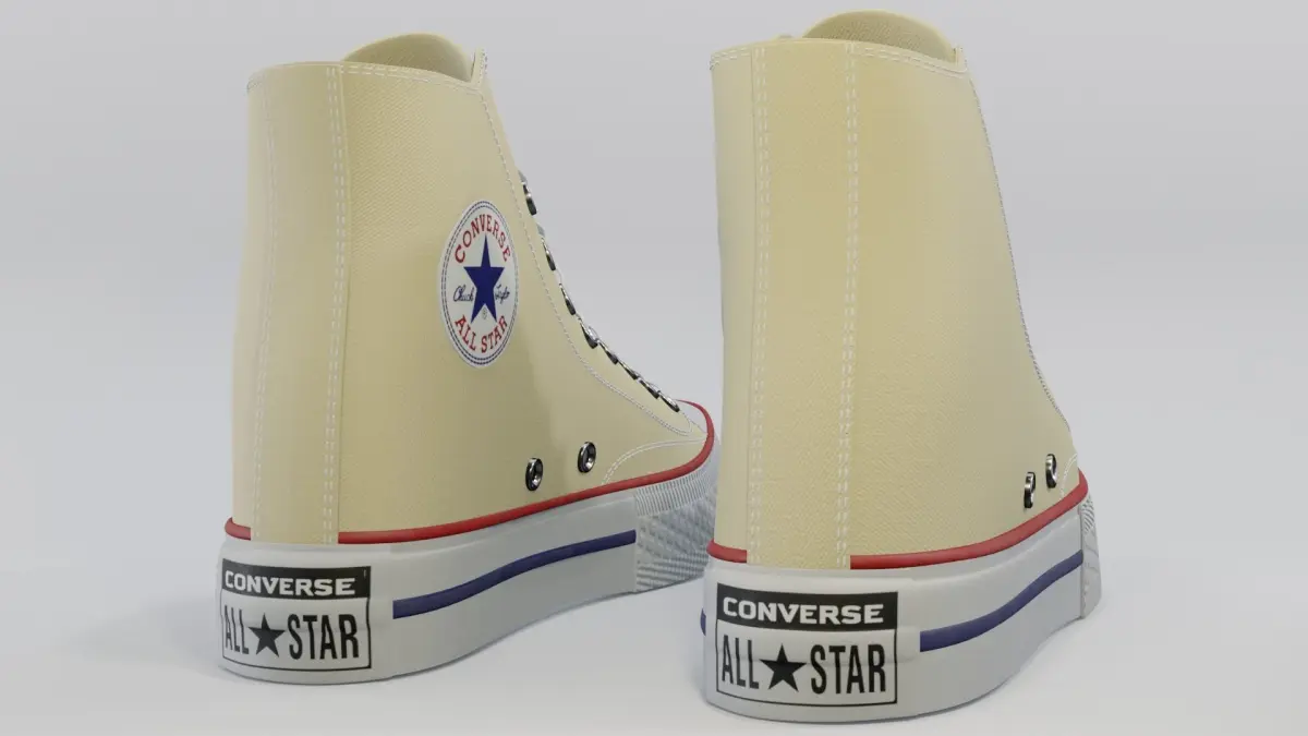 Basketball Leather Shoes Converse All Star Light Yellow.Features:No errors or missing filesScaled representation of the original object.Model is fully textureTextures Formats:Textures are PNG format4096x4096 (1)Object has its own texture in the following formats:Base_ColorMixed_AOMetallicRoughnessNormalOpacityModeling, mapping Blender 3.0Texturing in Substance Painter. Photoshop