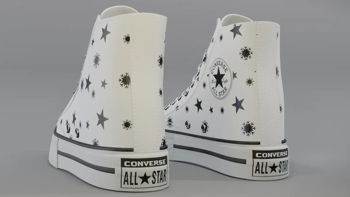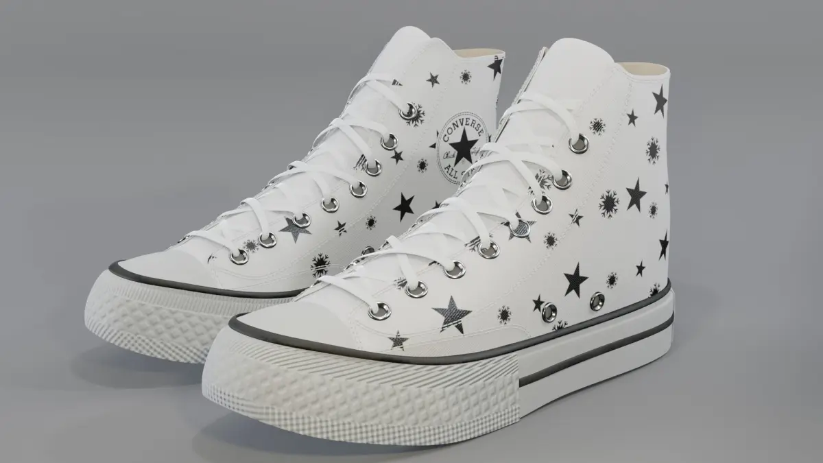 Basketball Leather Shoes Converse All Star White Stars and Snowflakes.Features:No errors or missing filesScaled representation of the original object.Model is fully textureTextures Formats:Textures are PNG format4096x4096 (1)Object has its own texture in the following formats:Base_ColorMixed_AOMetallicRoughnessNormalOpacityModeling, mapping Blender 3.0Texturing in Substance Painter. Photoshop