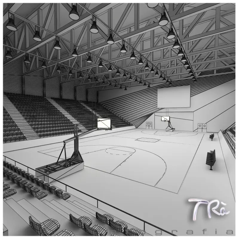 Indoor Basketball Court Scene 3 3D Model Model of basketball arena indoor, modeled with Max 8 and Vray materials. Includes materials and maps