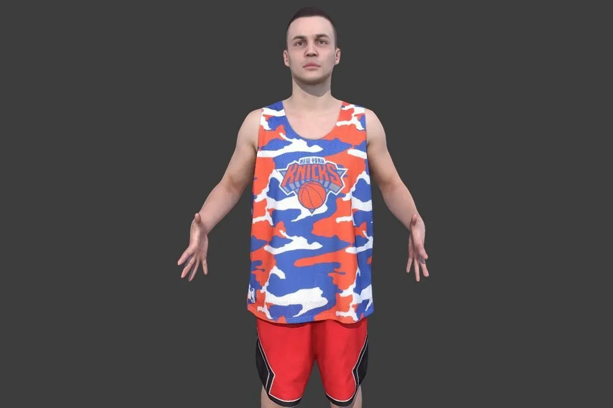 High quality ready-posed street basketball player fullbody scan. Suitable for the architectural visualization and another graphical projects.