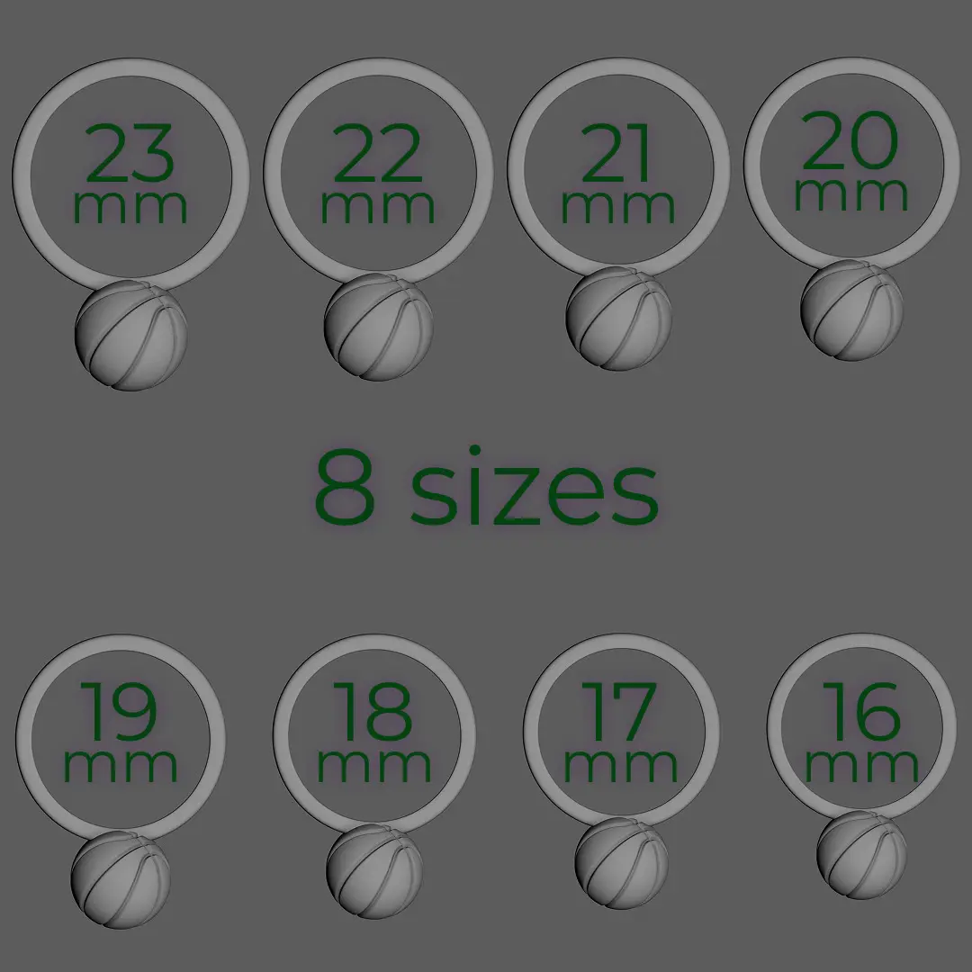 8 STL and OBJ files (sizes: 16mm, 17mm, 18mm, 19mm, 20mm, 21mm, 22mm, 23mm)