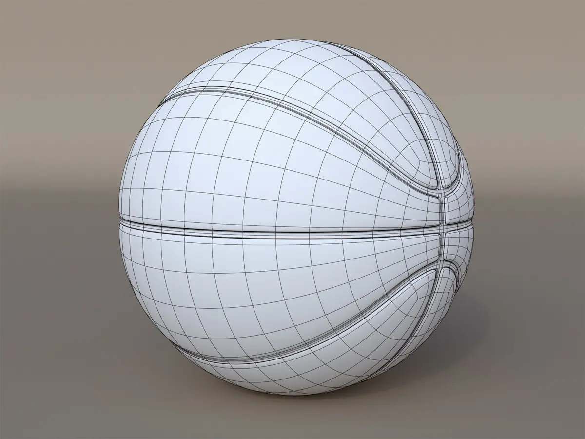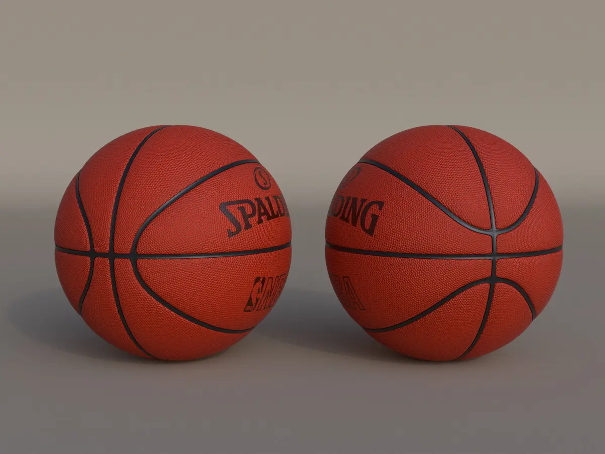 Photo real basketball 3d model with slightly worn appearance and non-symmetrical sides.
