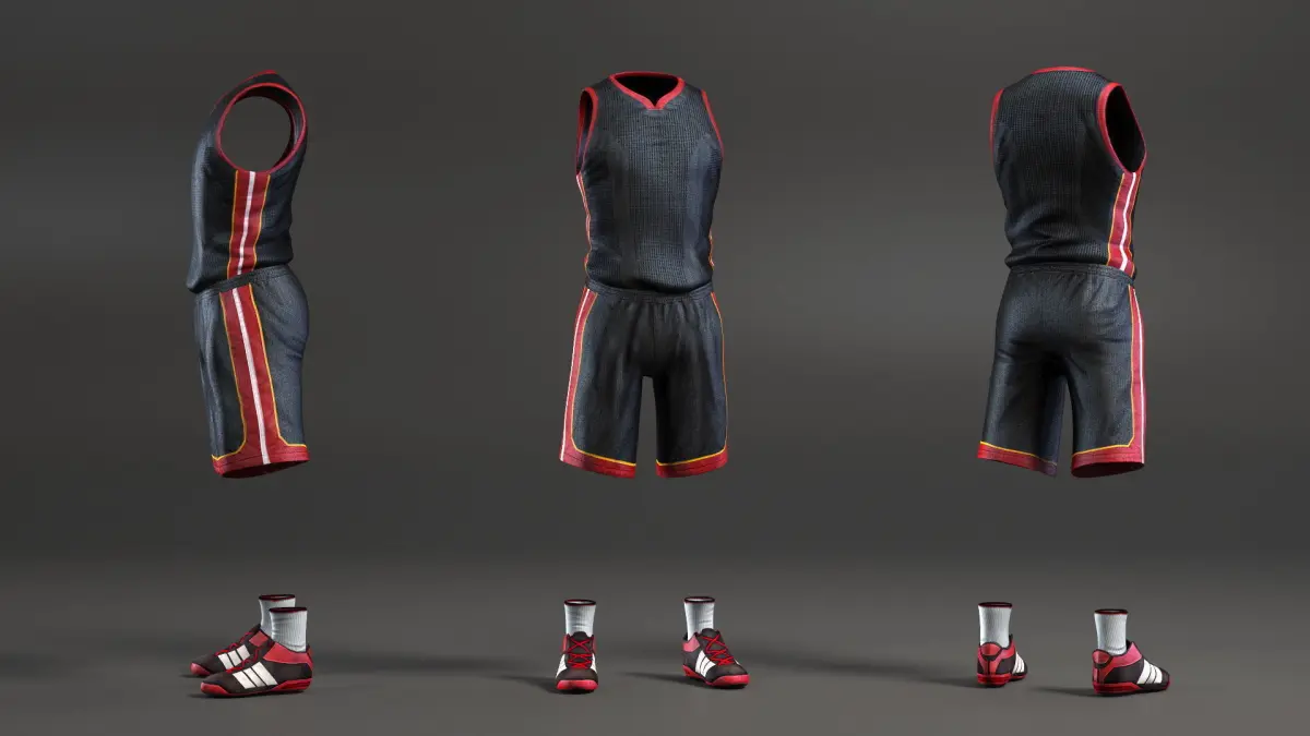 For sportswear design, athletic fashion, 3D clothing visualization, basketball apparel branding, video game asset creation, virtual sports environments, VR training simulations, sports marketing materials, sportswear manufacturing prototyping, basketball lifestyle promotions, athletic training resources, and interactive sports display projects.Basketball Uniform Set with Sneakers is a high quality, photo real 3d model that will enhance detail and realism to any of your rendering projects. The model has a fully textured, detailed design that allows for close-up renders, and was originally modeled in 3ds Max 2020 and rendered with V-Ray. Renders have no postprocessing!
