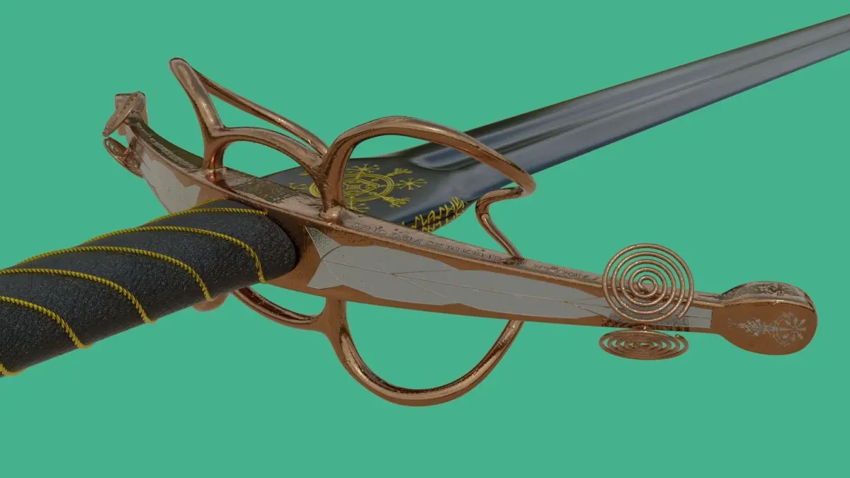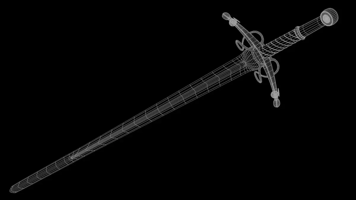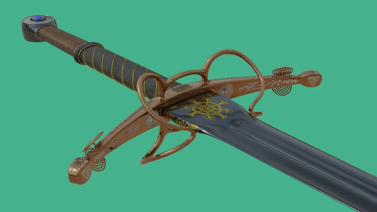 This is a model of a medieval bastard sword, inspired by the one found in a popular medieval multiplayer game called Mordhau.It is 120 cm long, 71 cm wide at the crossguard, and 2.5 cm high. It is decorated with nordic runes and Swedish and Norwegian writing. It includes phrases like Send dem skrikende inn i etterlivet! or Send them screaming into the afterlife. I did not go with any specific style with this sword.It was modeled, textured, and rendered in Blender Cycles. I've exported the model into other formats but the materials are not 100% going to translate correctly to other software.All the necessary textures are packed in the blend file.The model mesh is not watertight so if you wish to print it, you will need to make a few modifications.This is a high poly model and while it can be used in a game, it is not recommended as the mesh is not as optimized as it could be.The engravings were made by painting a black&white mask in photoshop on top of the UV layout. The same technique has been used to create the transition between leather and wood.Most of the runes were made with an online translator while some of them were drawn by my good friend.All the material textures were downloaded from Texture Haven.