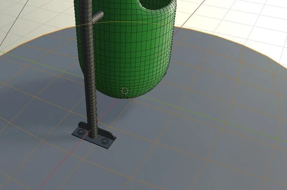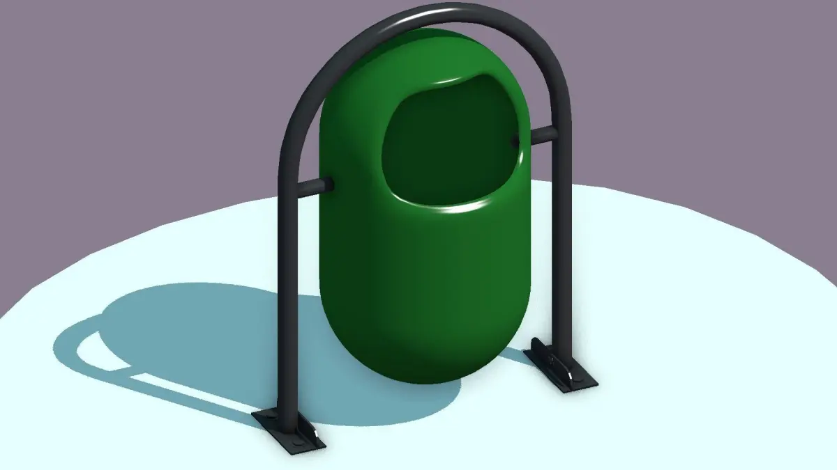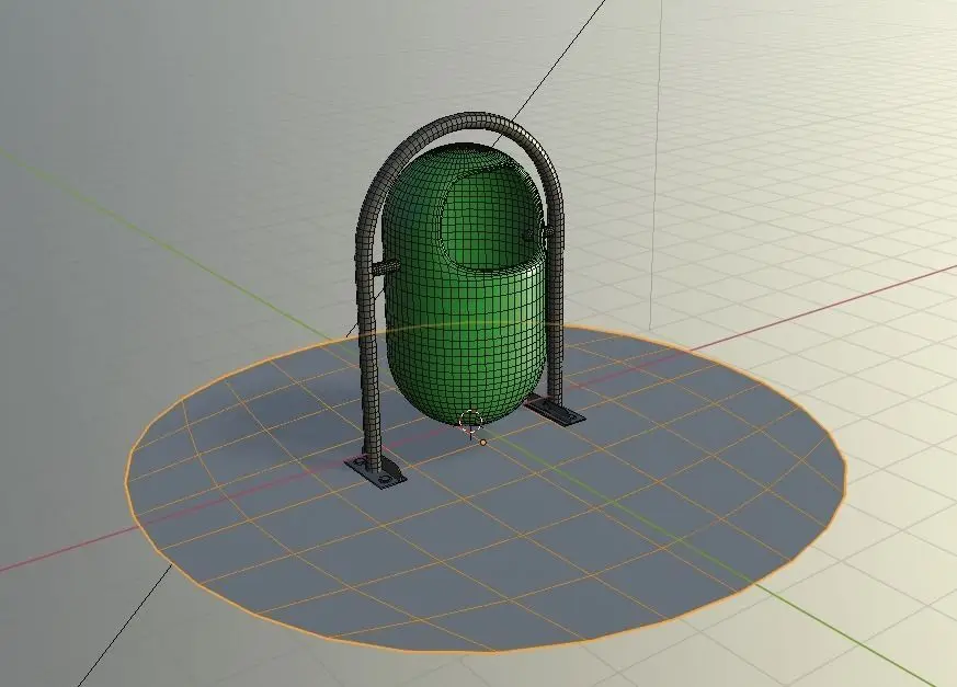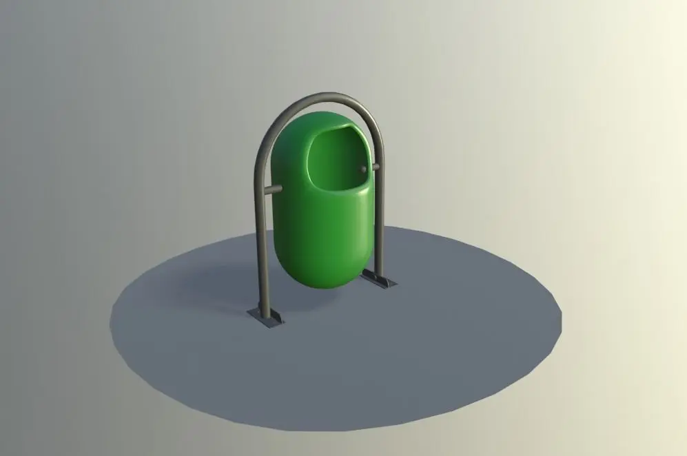 Basurero ovalado típico de los parques o Plazas Chilenas, modelado en blender.