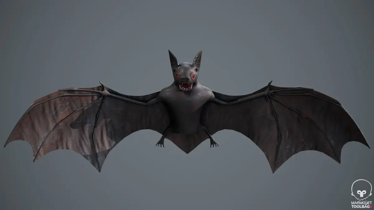 Flight animation loop.This is a model of a bat made and rigged in Blender.