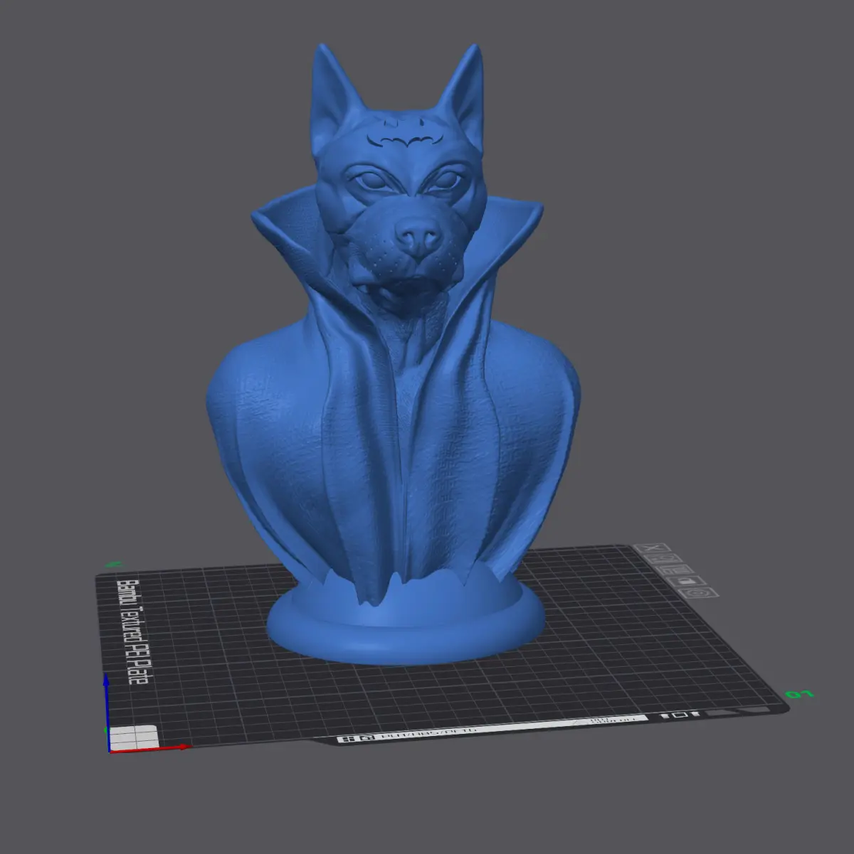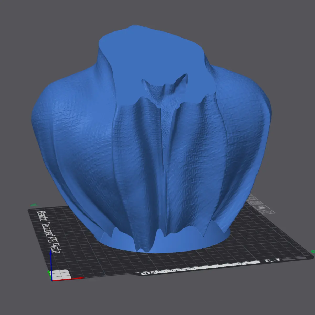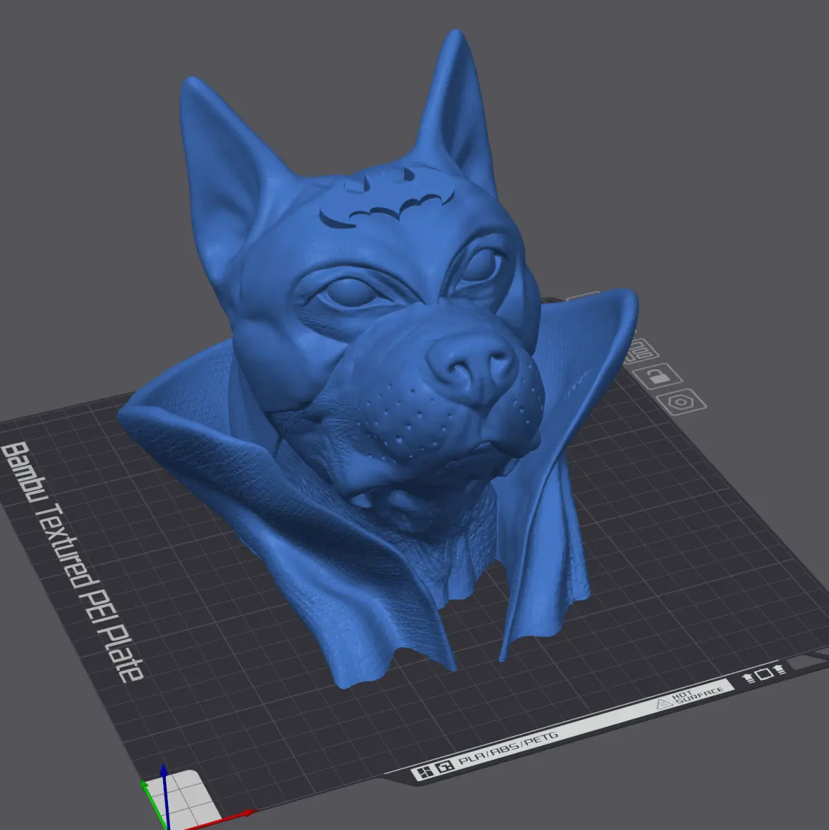 The overall printable model consists of 4 STL files and can be printed in 3 parts:BAT-Dog-Fantasy-Bulldog-Cape-Complete.stlBAT-Dog-Fantasy-Bulldog-Cape-CUT-Base.stlBAT-Dog-Fantasy-Bulldog-Cape-CUT-Body.stlBAT-Dog-Fantasy-Bulldog-Cape-CUT-Head.stl