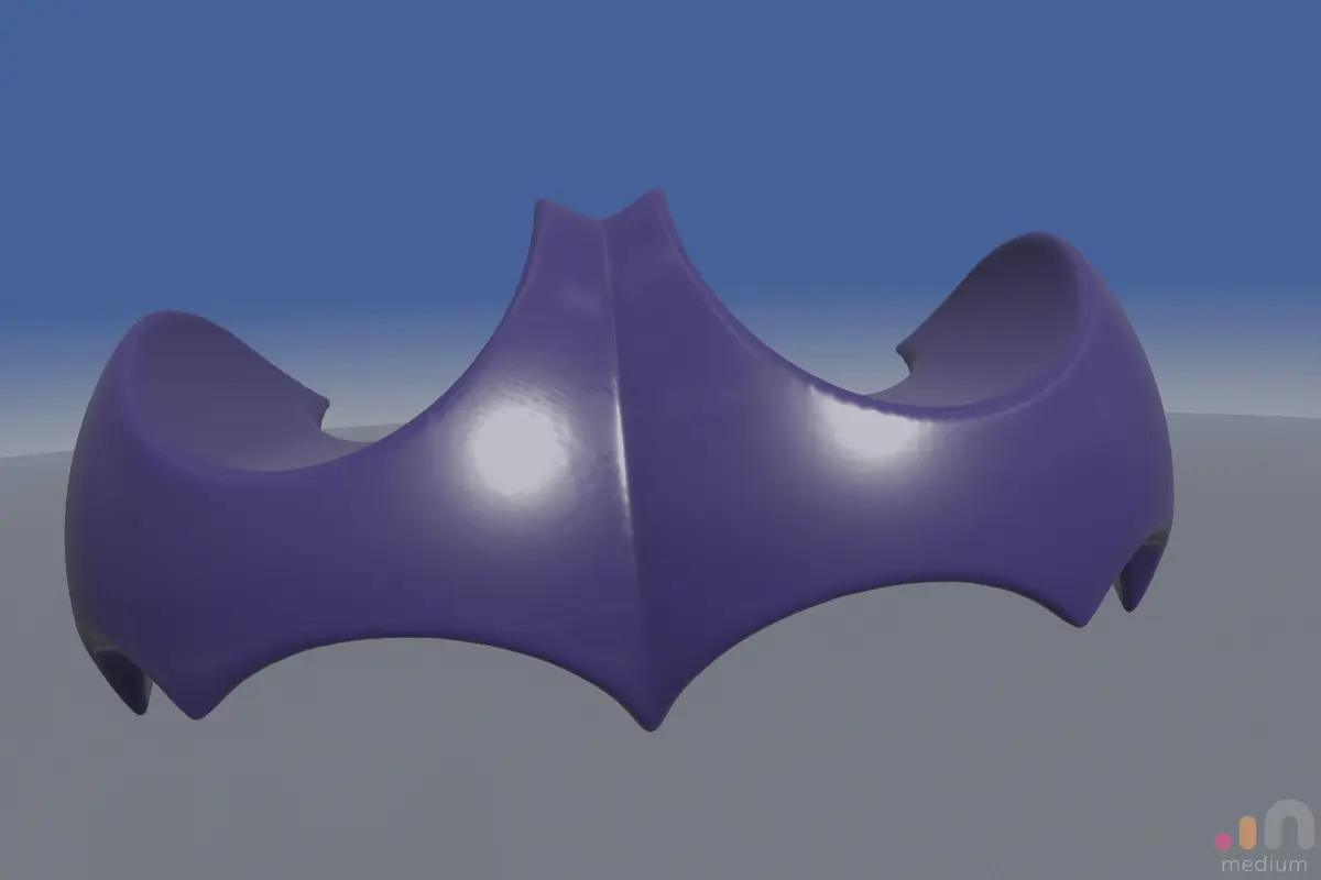 I was exploring some conceptual 3D bat-like shapes and evolved this design. Overall a very 3D Bat Logo. It can almost be a flying craft or throwing Batarang weapon for Batman. Will probably develop this design further into a flying craft with detailed accents.