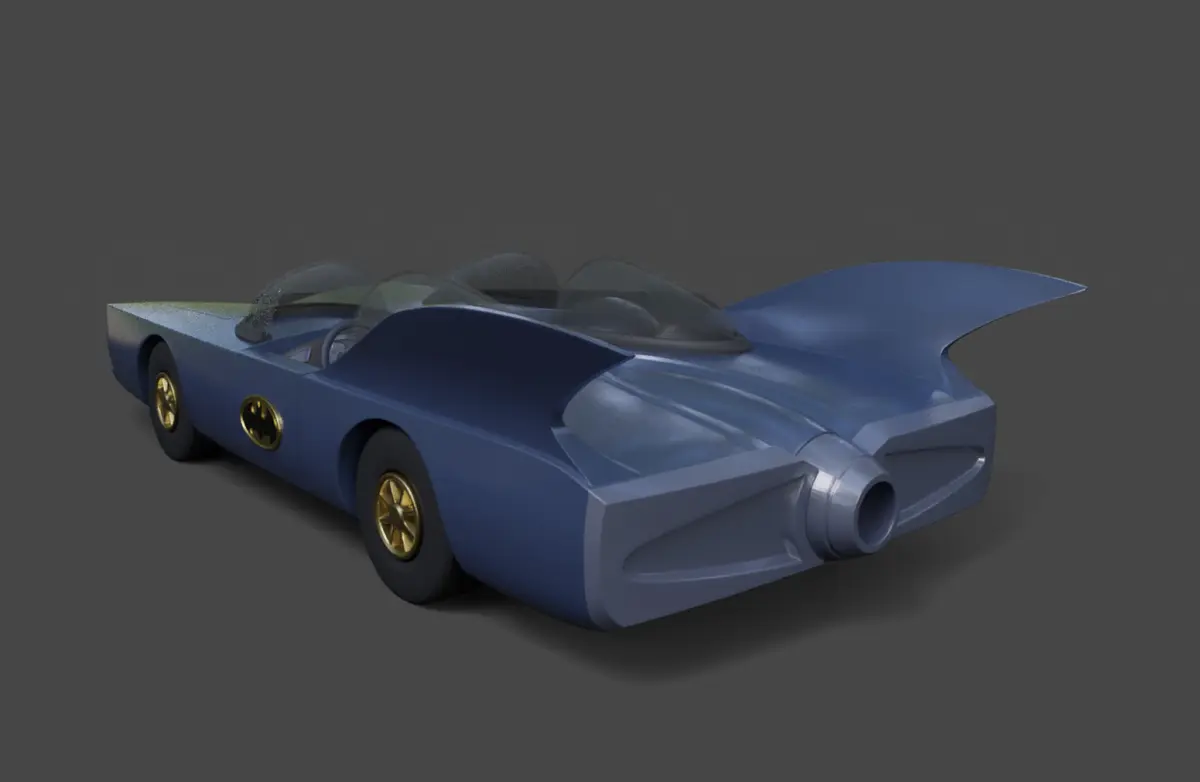 This version of the Bat Mobile has been split into several pieces, making it easier to print and assemble. This version has been created with functional tires. The body has been split into front and rear parts, which need to be glued together or can be printed assembled.