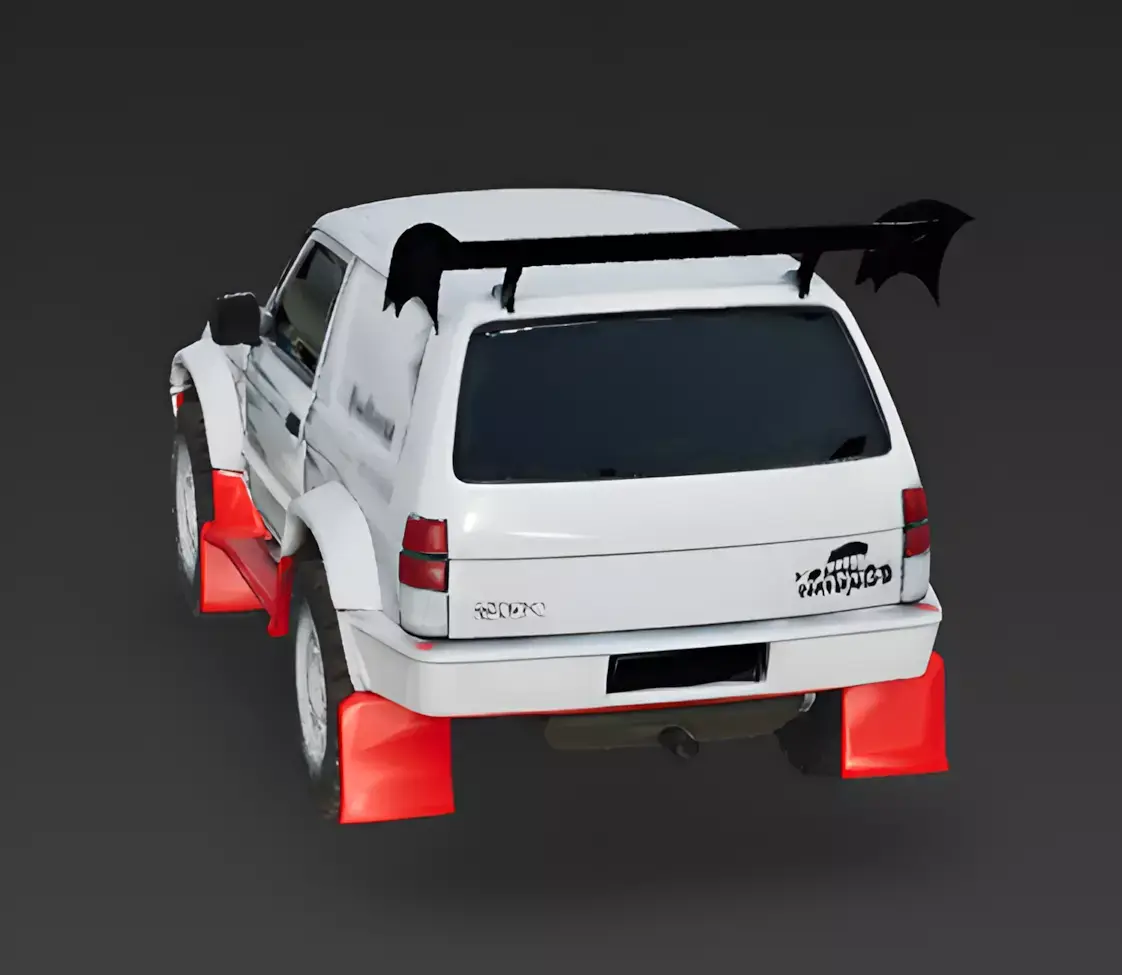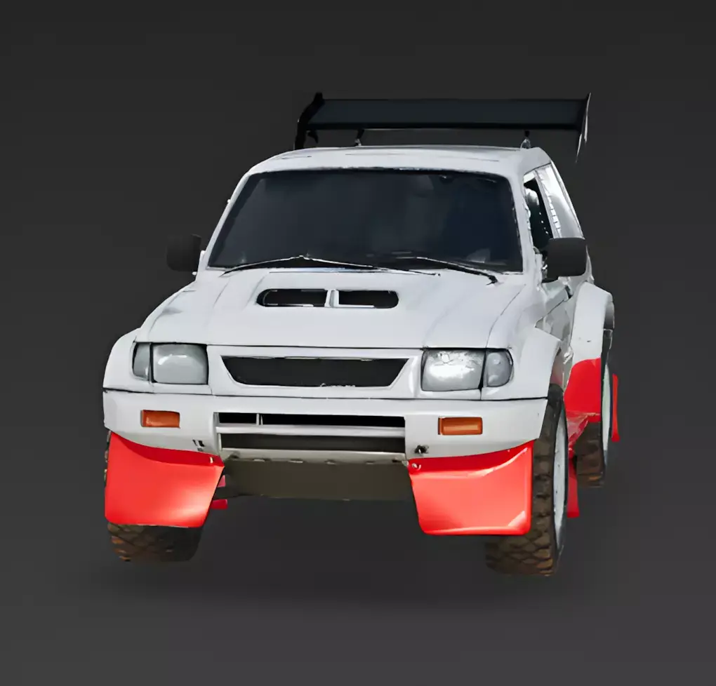 Asset BreakdownThis model is a high-octane fusion of off-road performance and gothic flair. It transforms a compact 90s-style rally SUV into a unique, character-driven racing machine designed for speed and style.