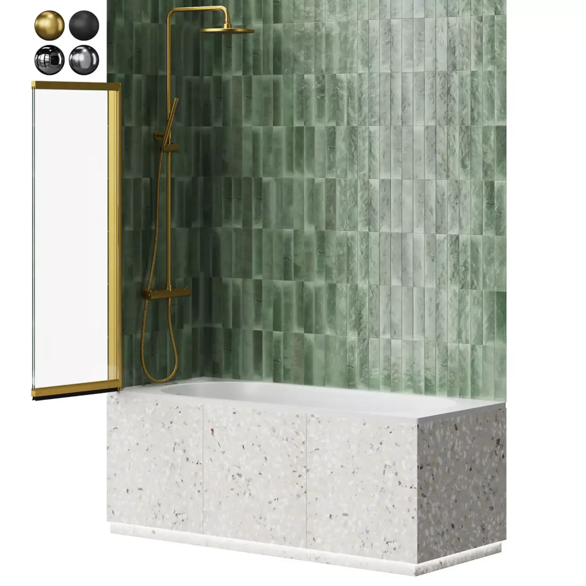 Villeroy & Boch O.novo Rectangular bath 170x70cm.Omnires Y faucets, Wasserkraft bathtub curtainMarazzi lume wall tiles in 4 colorsVitra Bathroom Tile (Terrazzo-X Light, Marmori San Lauren Black, Marmori Noble Cream Lappato, Marmori Cold Greg Lappato)CoronaLegacy materials, 3ds max 2018, OBJ