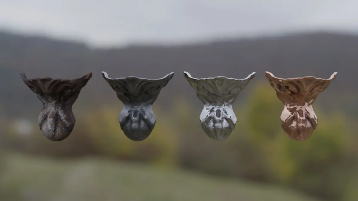 These bath feet are a series of photogrammetry models. It includes 4 different materials such as the original rust material as well as the Cast iron, steel and copper which were added later on in substance painter. The texture maps include 2K PBR materials.