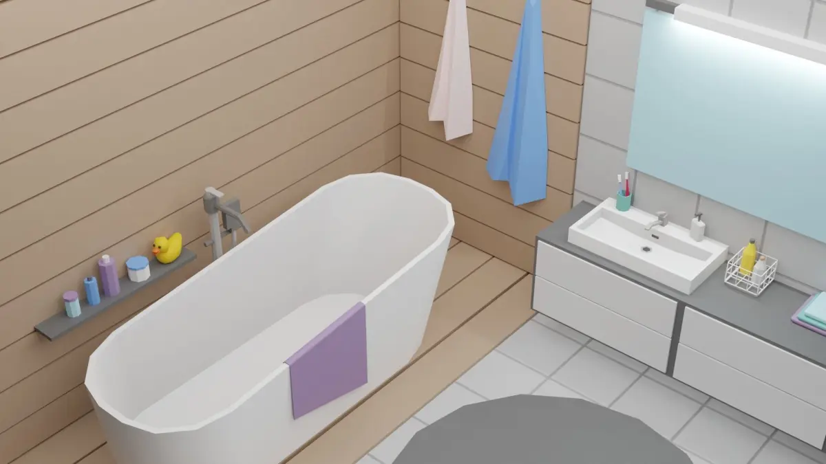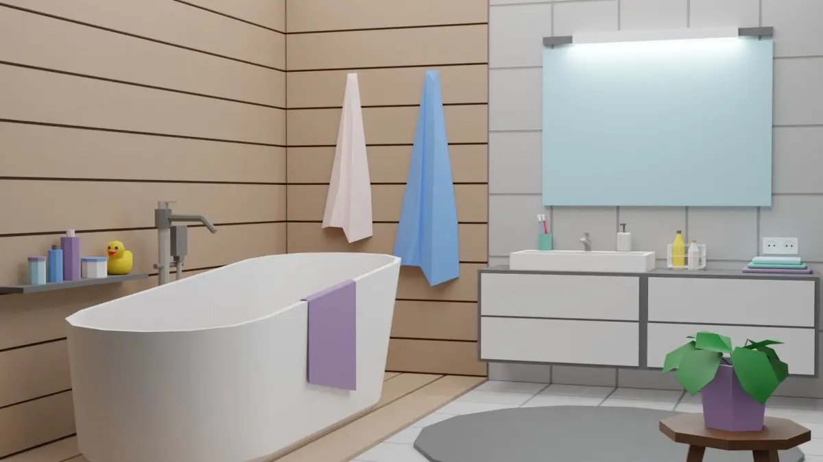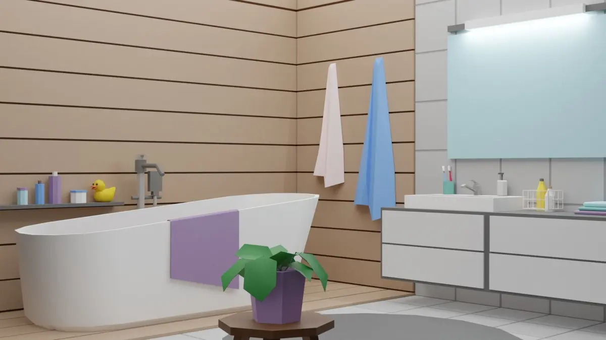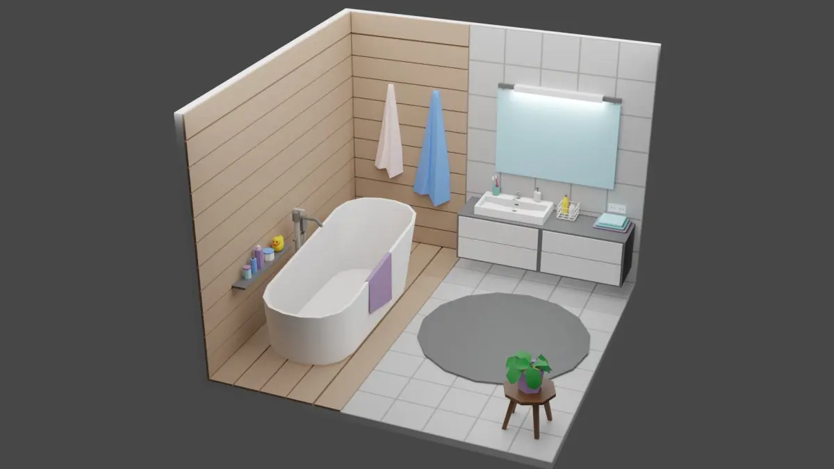 This set includes 24 unique props: bath / washbasin / mirror / carpet / towels / flower / accessories and more!