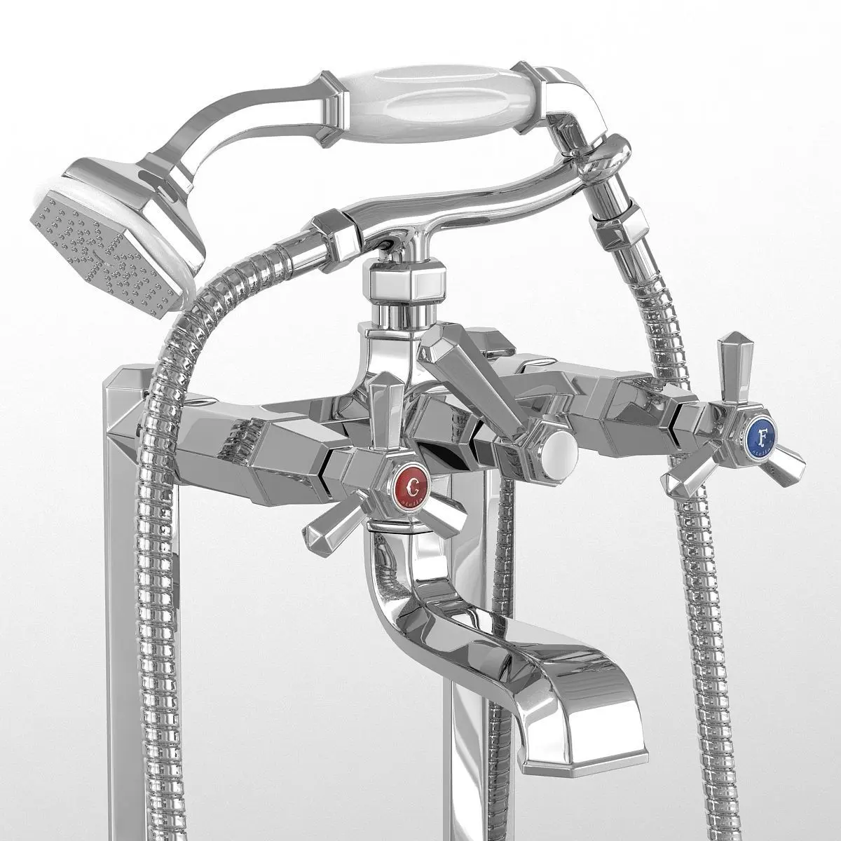 Shower set - art.3284 / 33 Floor mixer - art.3274CL306FB Wall washer mixer - art.3223 Bidet mixer - art.3601 When importing a .obj file, in Geometry you need to turn off the Flip ZY-axis and turn on the Shapes / Lines. On the shower hose HoseBath001 throw Skin and connect to LineP. This will allow you to lay the hose on the side of the bath, moving the vertices or segments of the LineP spline.