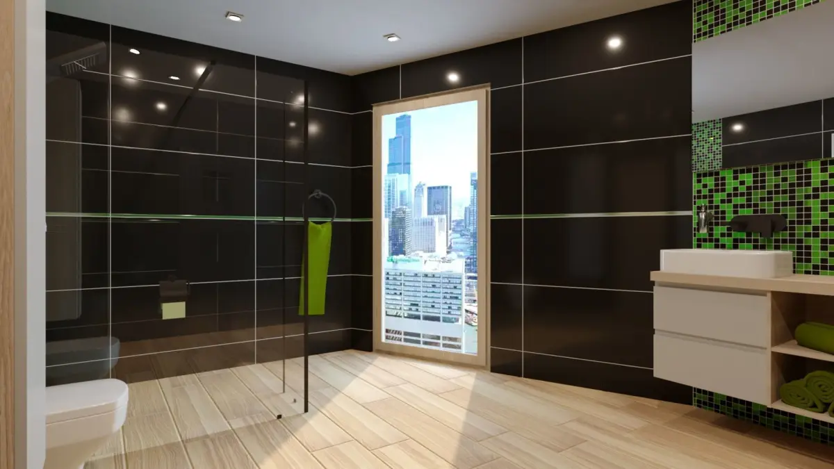 This is high quality model of big modern bathroom.