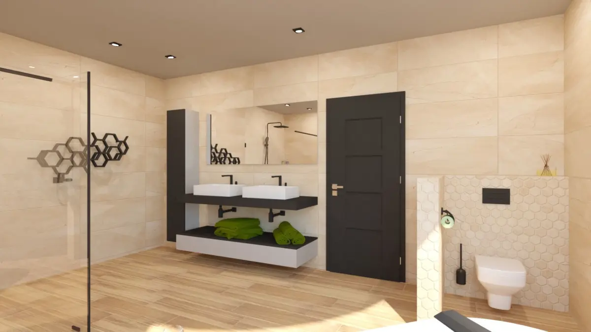 And to top it off, there are few details like soapholders, towells and ceiling lights and various accesories (creams, gels, flower pot etc.)