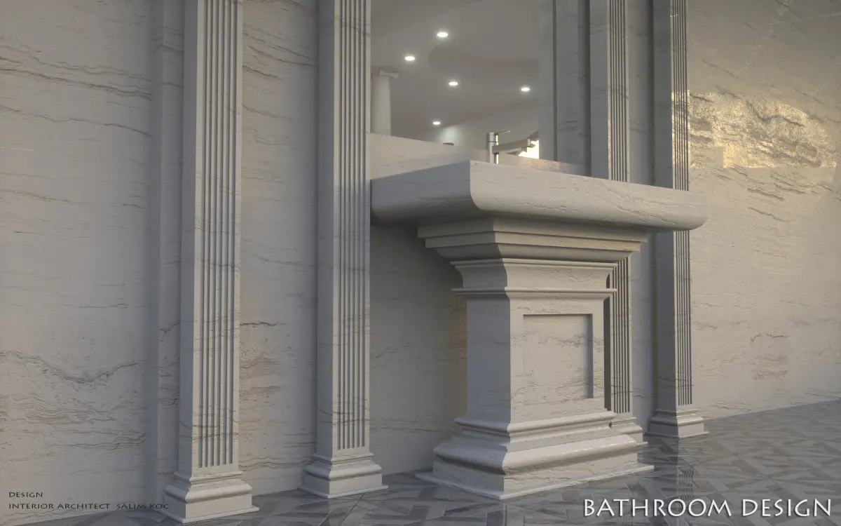 A MODERN BATH DESIGN.......................RUSTIC COLUMNS.........................