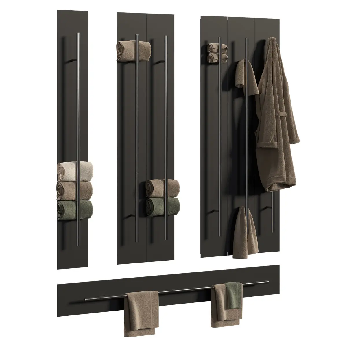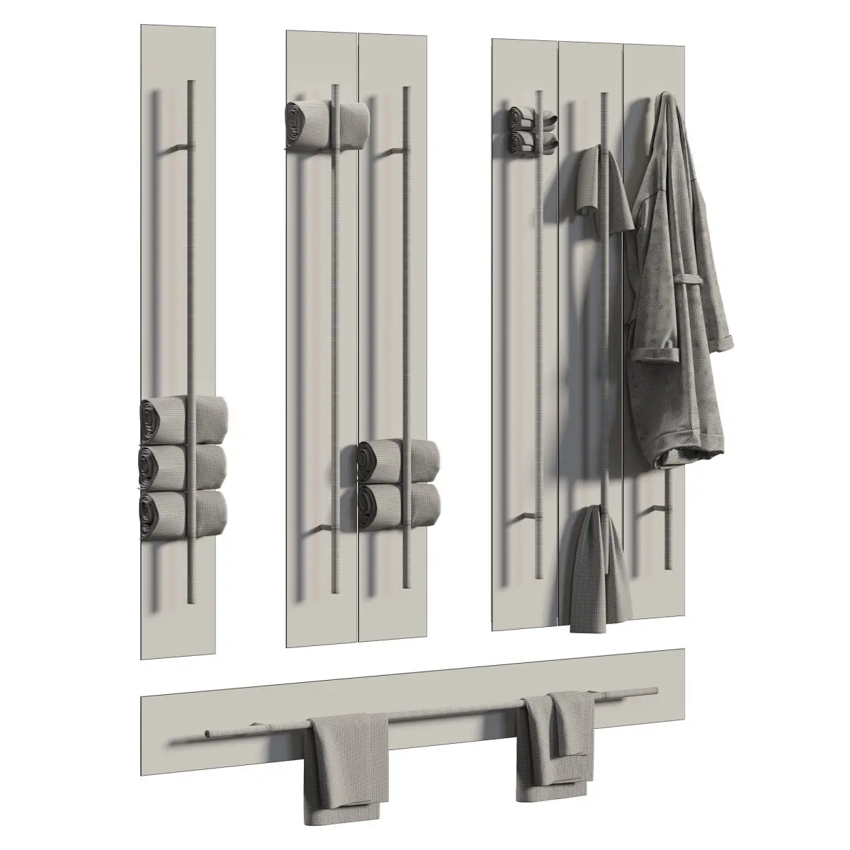 Towels on a heater. You can combine it in different ways.High detailed 3D modelAll geometry is ready for subdivisionUVW MappedPolys: 948058Verts: 948297Dimensions: 25 x 12 x 200 cm (one unit)