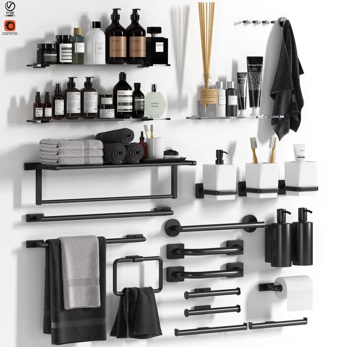 Name: Bathroom_Accessories_Vol03Version: 2015Units: CentimetersDimension: 148.42 x 21.92 x 147.91Polys: 761 871XForm: YesBox Trick: YesModel Parts: 113Render: Vray + CoronaFormats: 3Ds Max 2015, OBJ, 3DS