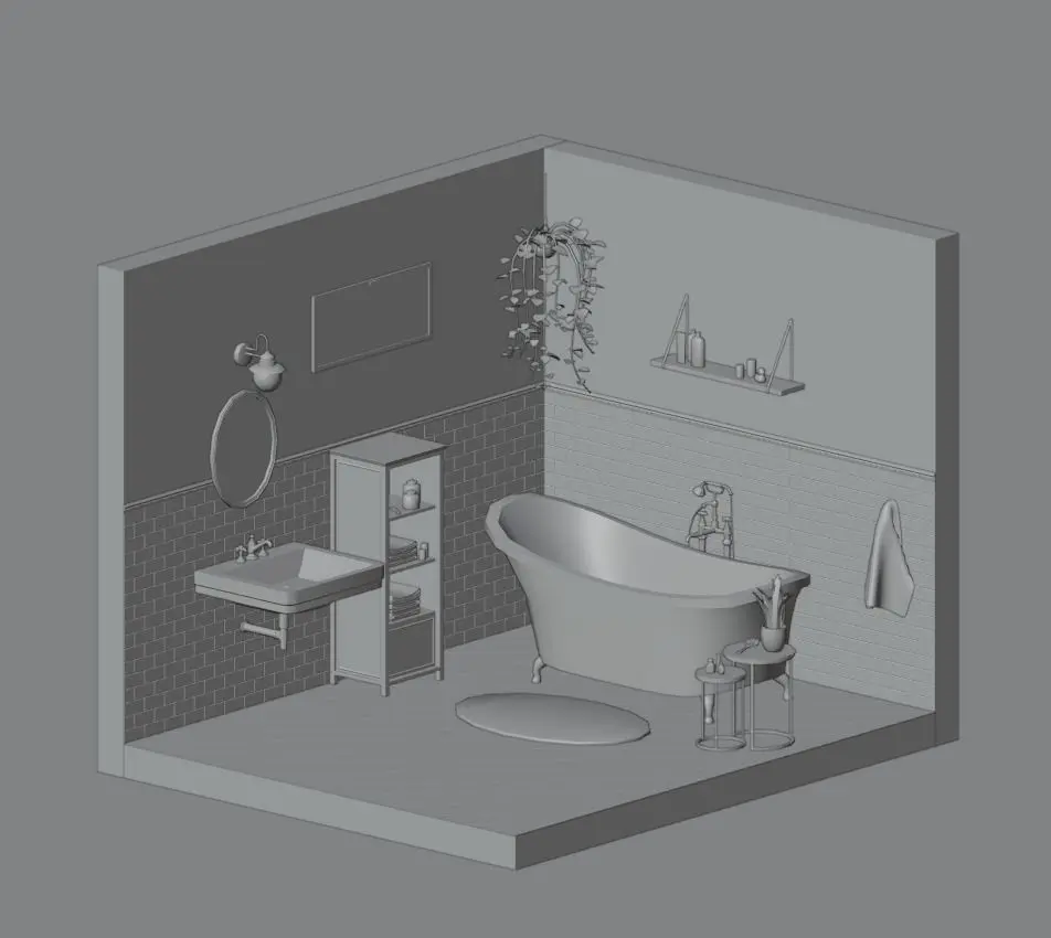 I am pleased to present to you this bathroom which will blend in with any decor of this style ! You can integrate this mini scene in all your games or animations and create a unique decor of which only you have the secret ! This pack contains: