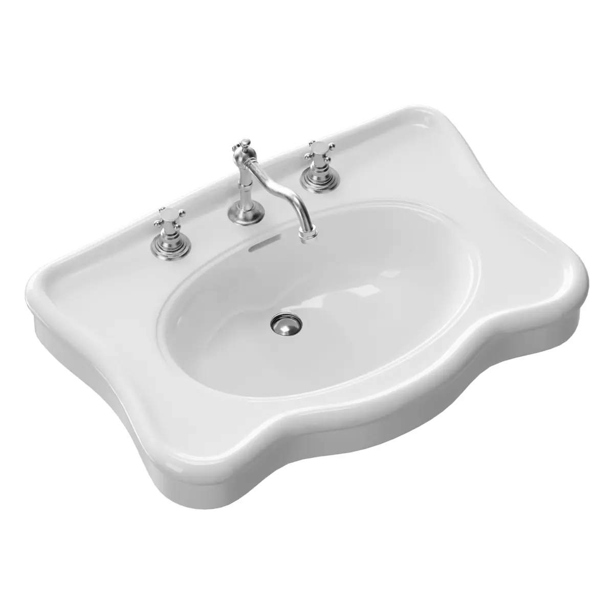 Name: Bathroom Console Sink Deluxe Counter Top White Vitreous ChinaType: modelFormat: 3Ds Max 2016Export: FBX, OBJ, MTLRender: CoronaPolys: 19082Verts: 19236Units: MillimetersDimension: 844.64 x 587.55 x 545.06Description: