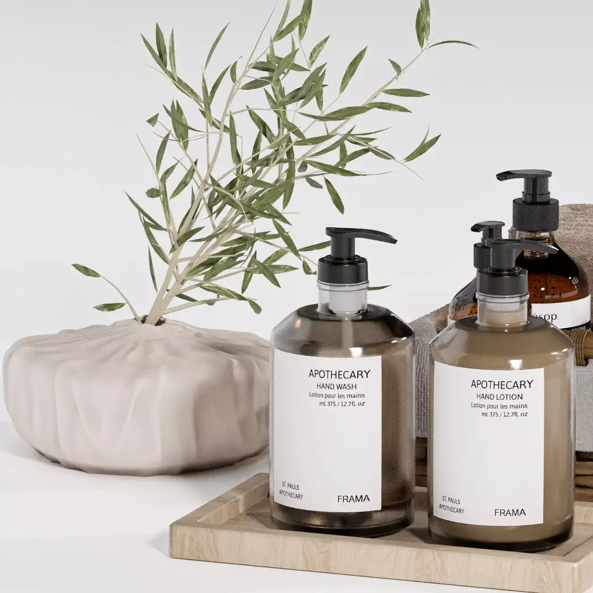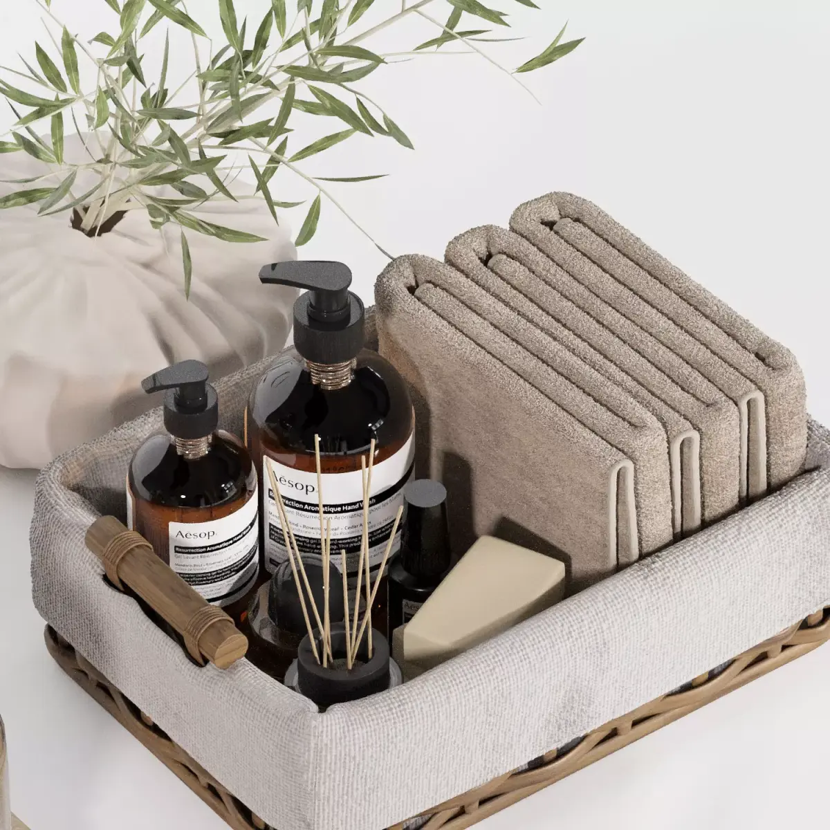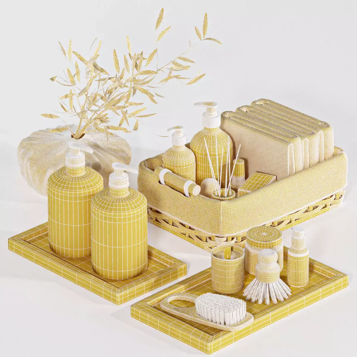 Bathroom decorative set H55 with bouquet and cosmetics.