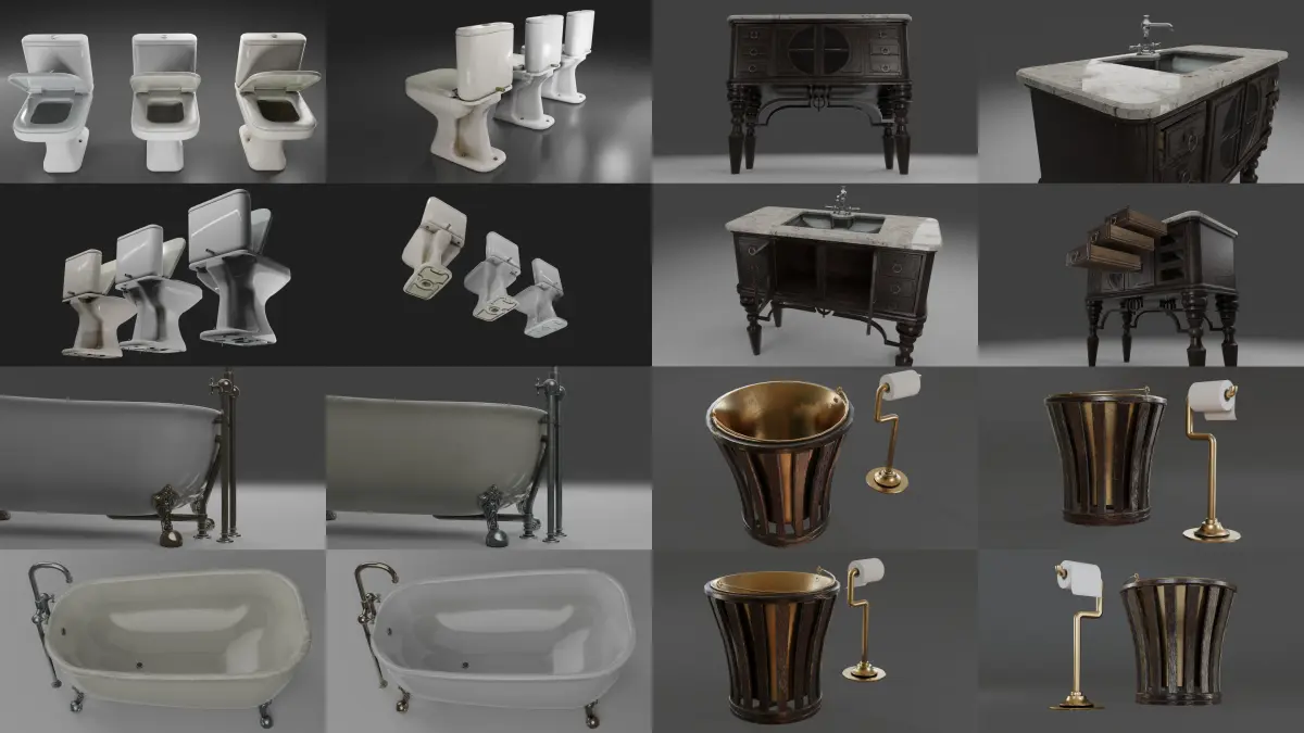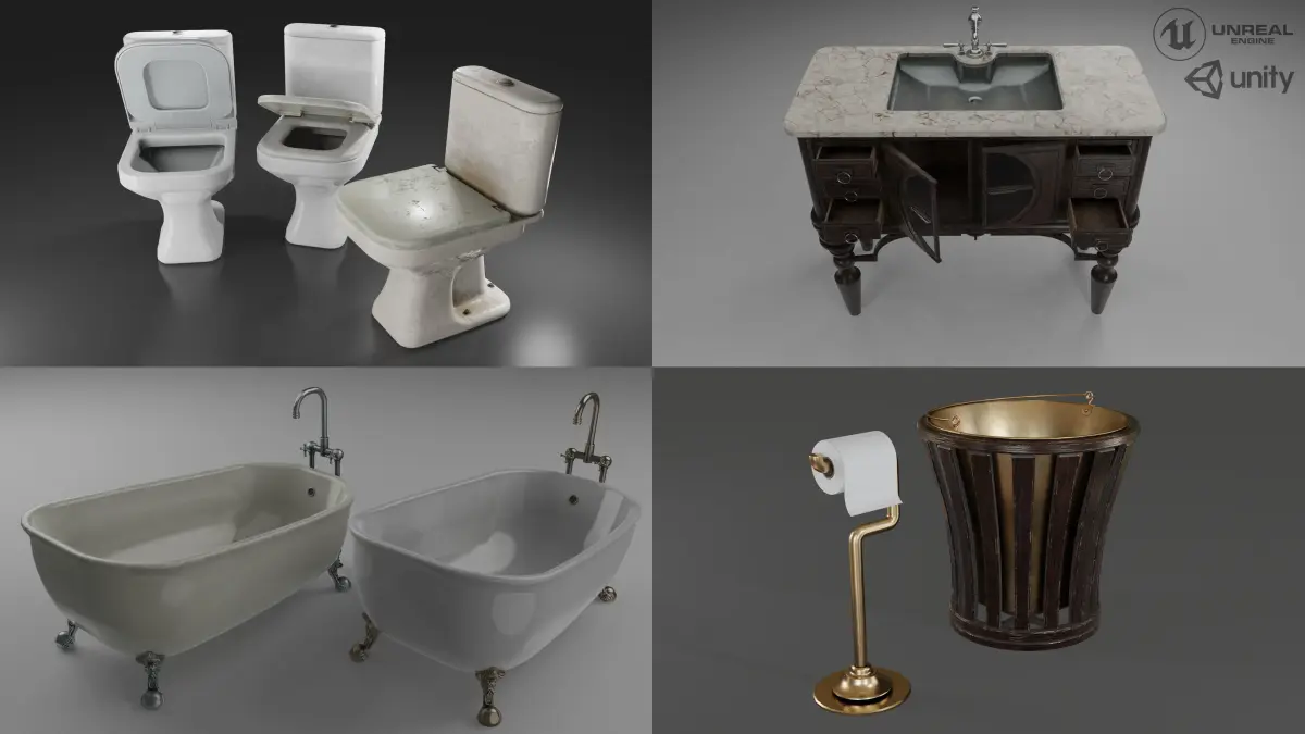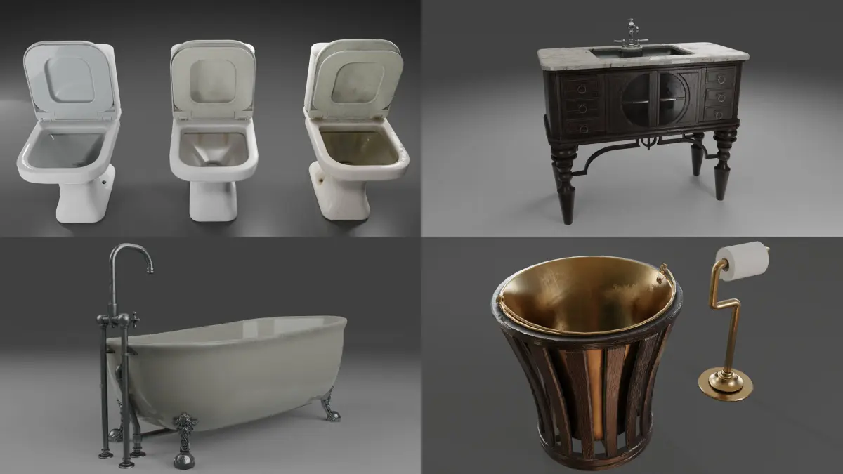 A Low-poly collection of bathroom environment 3D models made in Blender 2.91