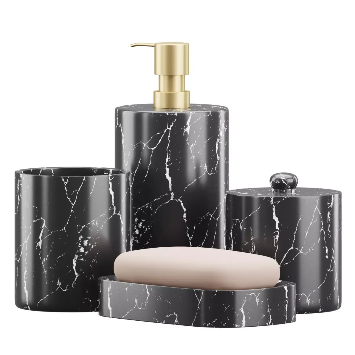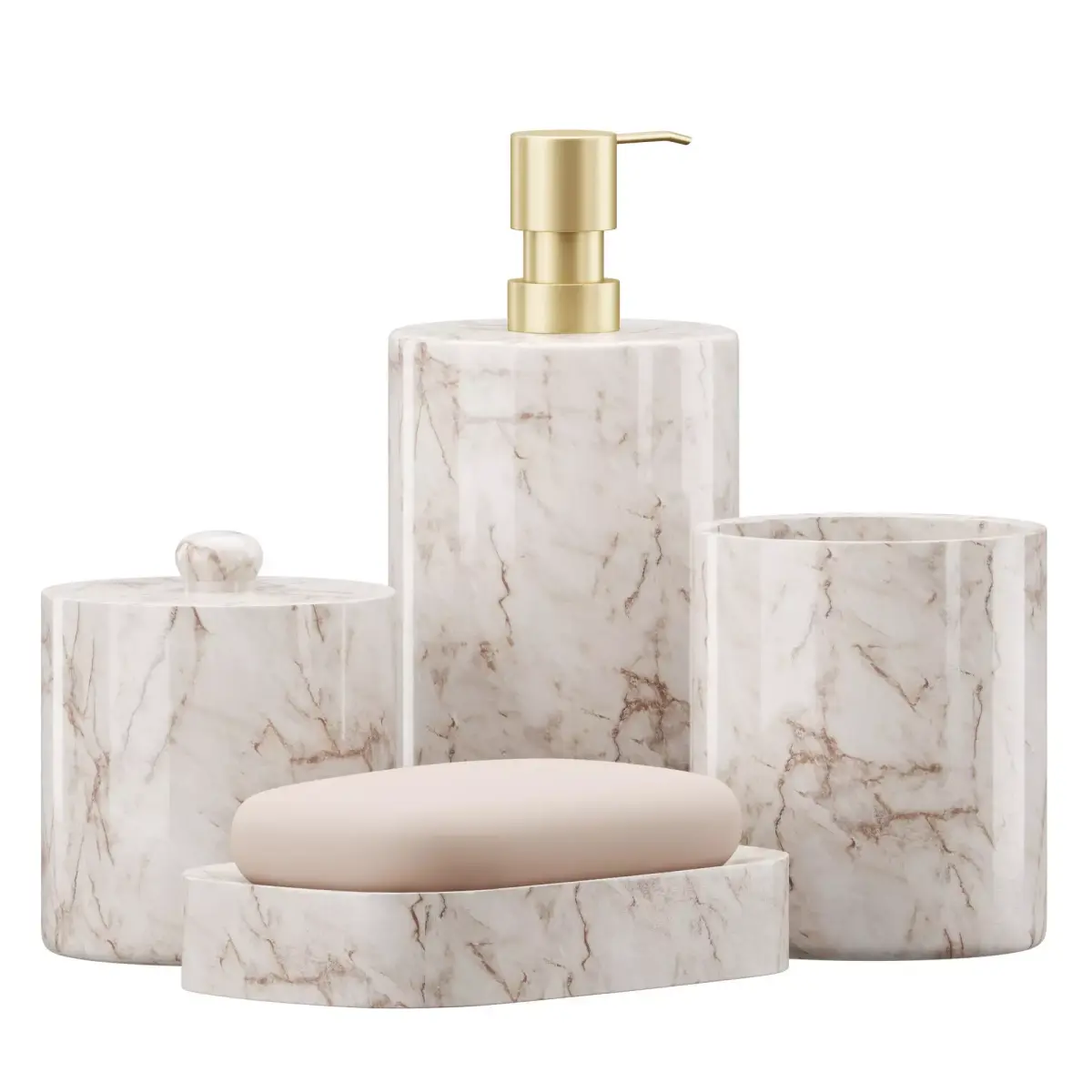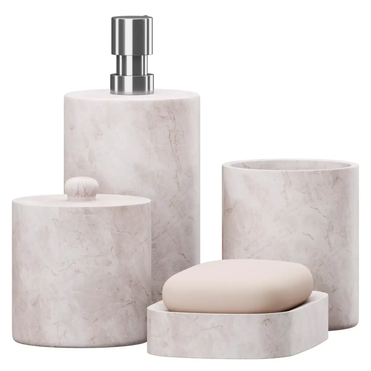 Name: Bathroom Essentials SetType: modelFormat: 3Ds Max 2016Export: FBX, OBJRender: Corona Renderer 10Polys: 20346Verts: 20382Units: MillimetersDimension: 681.38 x 233.24 x 176.47Description: A luxurious marble-style bathroom essentials set featuring a soap dispenser with gold pump, tumbler, soap dish, and lidded jar. Designed to elevate any bathroom with elegance and functionality, this set combines modern design with timeless marble texture.Tags: bathroom set, marble accessories, soap dispenser, bathroom decor, luxury set, tumbler, soap dish, container jar, bathroom essentials, countertop set, modern bathroom, elegant accessories, bathroom organizer, gold pump, decorative set, hygiene accessories, interior decor, 3D model, classic bathroom set, resin marble finish