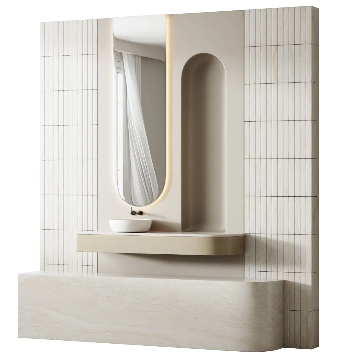 Name: Bathroom furniture 3Type: modelFormat: 3Ds Max 2016Export: FBX, OBJRender: Corona (10)Polys: 148872Verts: 150824Units: MillimetersDimension: 12410.0 x 565.5 x 2814.43Description: This 3D model showcases a long and luxurious wall-mounted bathroom vanity set designed for large-scale or commercial bathroom interiors. The set features an extended countertop with multiple integrated sinks, offering both functionality and style. The expansive horizontal mirror enhances the feeling of space, while the clean-lined cabinetry below provides ample concealed storage. Subtle groove detailing and seamless surfaces emphasize its modern minimalist aesthetic. Ideal for high-end bathroom visualizations, hotel bathroom renders, or contemporary residential projects using Corona Renderer 10 for maximum realism.Tags: large bathroom vanity 3D, multiple sink bathroom model, commercial bathroom design, hotel bathroom 3D model, wall-mounted bathroom unit, wide bathroom mirror, integrated countertop sinks, Corona Renderer bathroom, FBX bathroom furniture, OBJ bathroom scene, minimal bathroom interior, long vanity 3D, realistic bathroom setup, architectural visualization, bathroom storage model, handleless bathroom cabinets, bathroom counter design, high poly bathroom asset, modern commercial restroom, interior render bathroom furniture