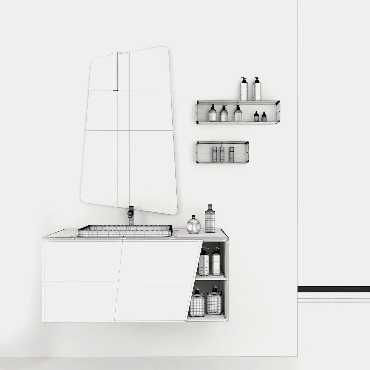 Bathroom furniture set Arcom e.Ly 3. Render : Vray, Corona Archives included: materials (mat) Corona, Vray, textures, fbx, obj, model 3ds Max 2014 Vray (3.4) and Corona (1.5)